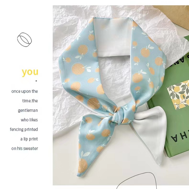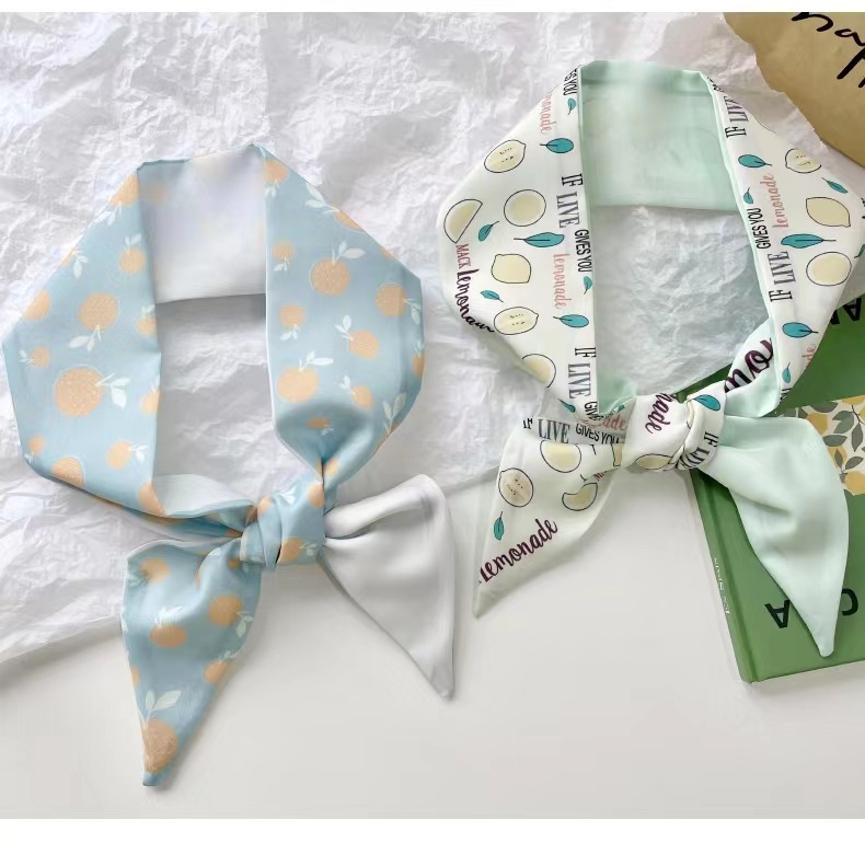 새 잎 양면 편지 실크 스카프 과일 리본 장식 조커 포장 가방 스트랩 달콤한 머리 액세서리 이우 도매