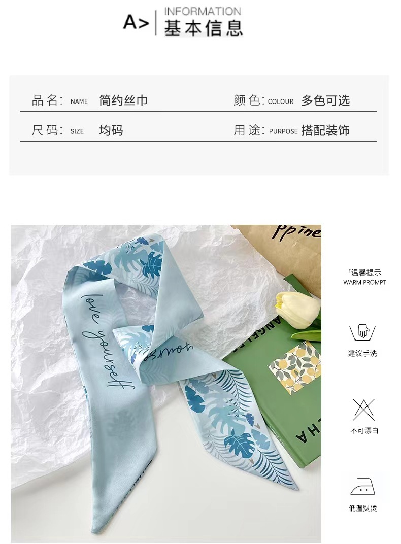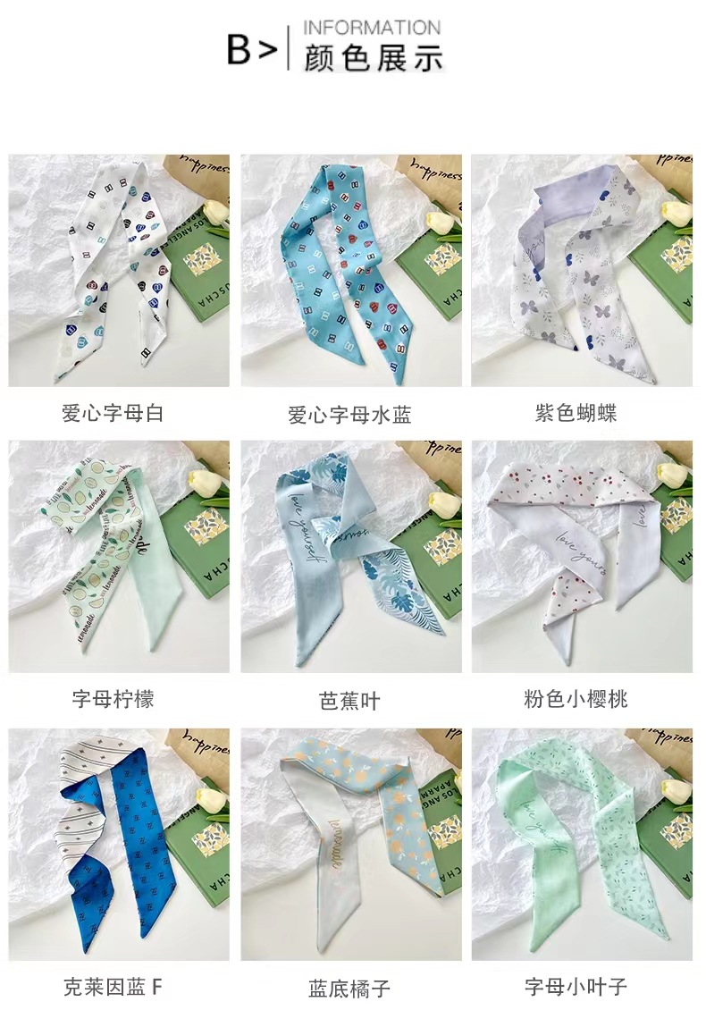 새 잎 양면 편지 실크 스카프 과일 리본 장식 조커 포장 가방 스트랩 달콤한 머리 액세서리 이우 도매스토어 가기