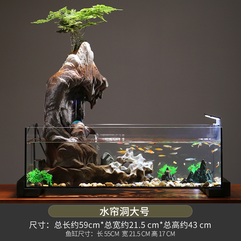 • 대형 물 커튼 동굴 어항 (수족관 조명과 녹색 식물 포함)