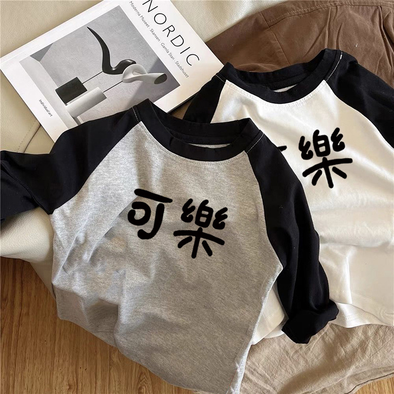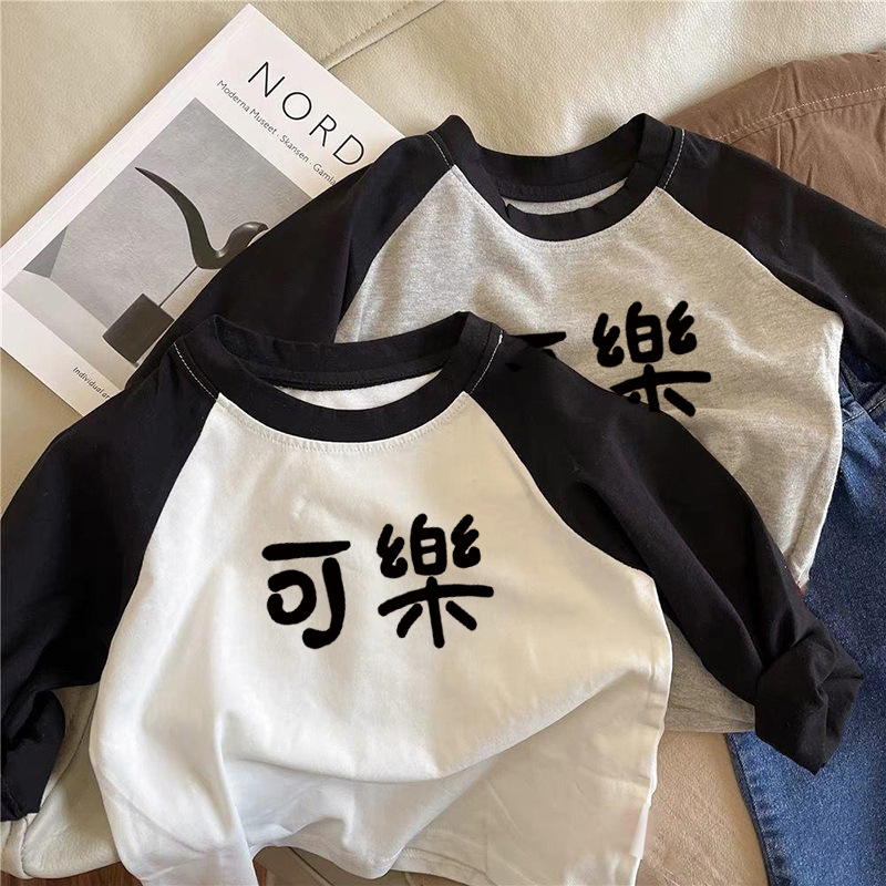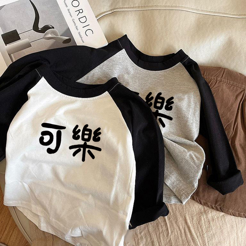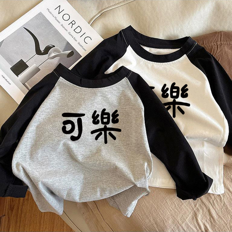 순면 어린이 티셔츠 긴 소매 남녀 아동복 2024 귀여운 재미 텍스트 어린이 탑베이스 셔츠 봄과 가을스토어 가기