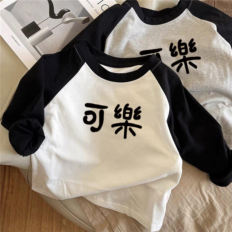순면 어린이 티셔츠 긴 소매 남녀 아동복 2024 귀여운 재미 텍스트 어린이 탑베이스 셔츠 봄과 가을