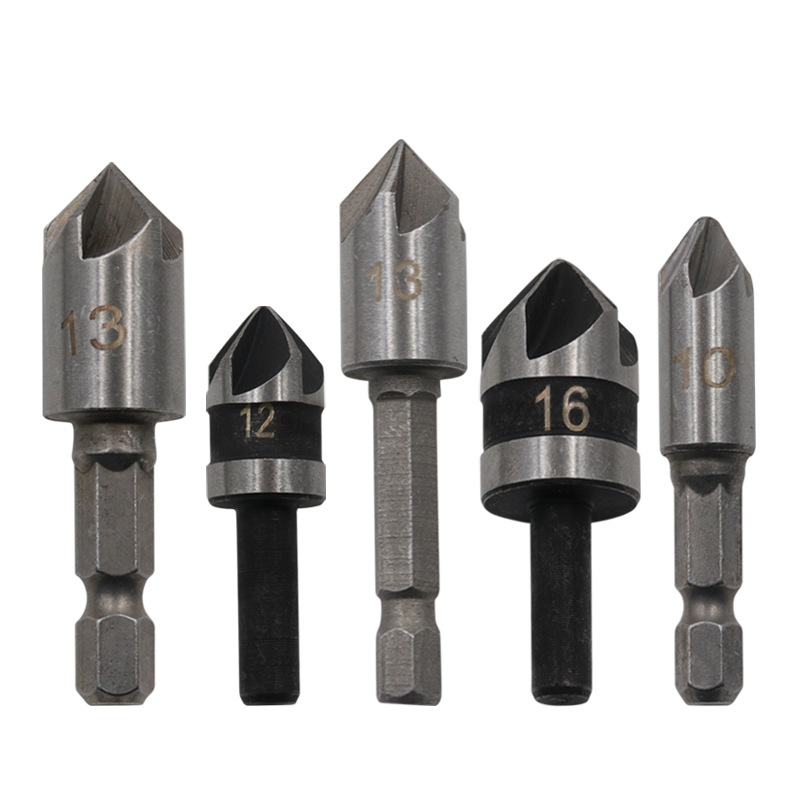 우드 센터링 카운터 싱크 드릴 5 세트 82 도 5 날 모따기 장치 목공 개방 빠른 가이드 모따기 도구 카운터 싱크 드릴