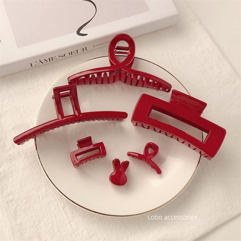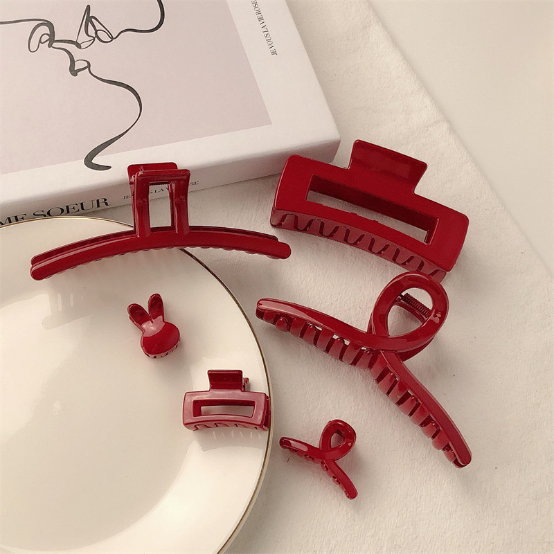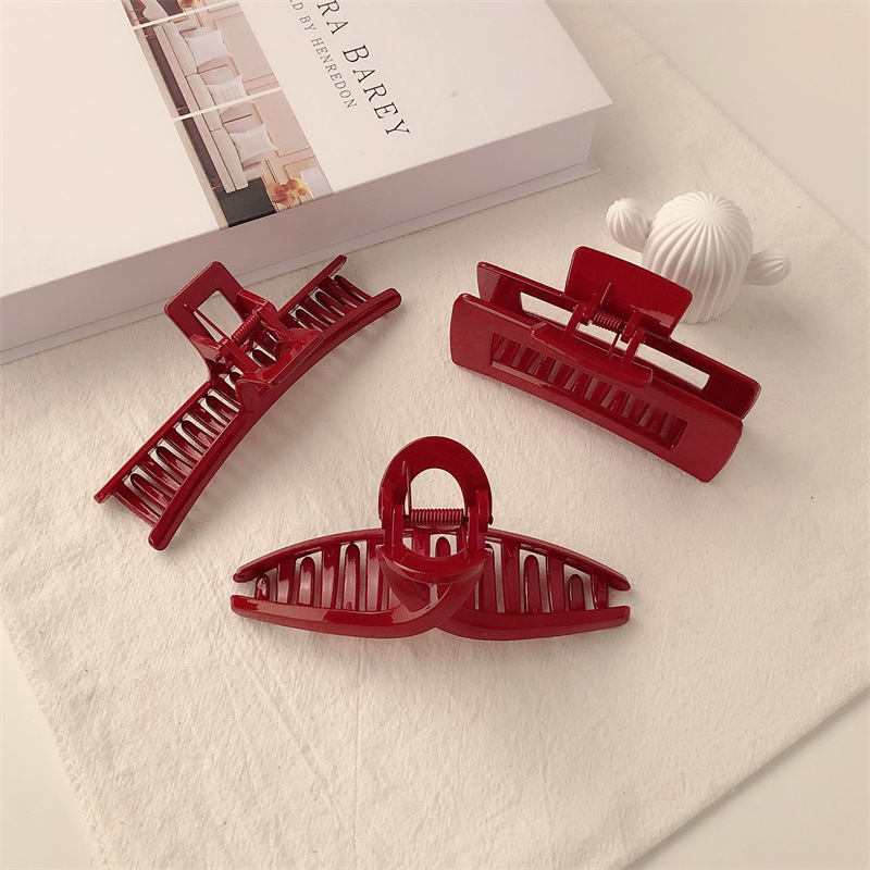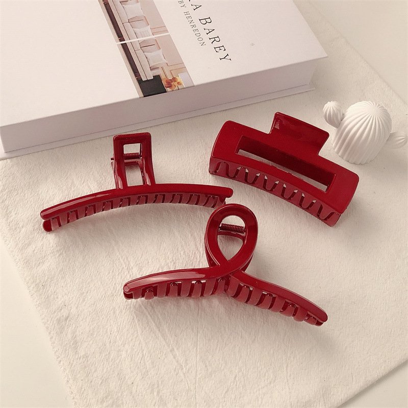 고급 레트로 레드 브라이트 대형 그랩 클립 한국 스타일 간단한 단색 모든 일치 세련된 헤어 클립 프랑스 스타일 게으른 디스크 헤어 클립