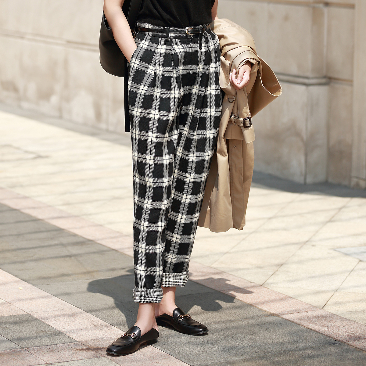 今年秋冬必备的一款气质型萝卜裤,大大的格纹简约大气 时尚不挑人。