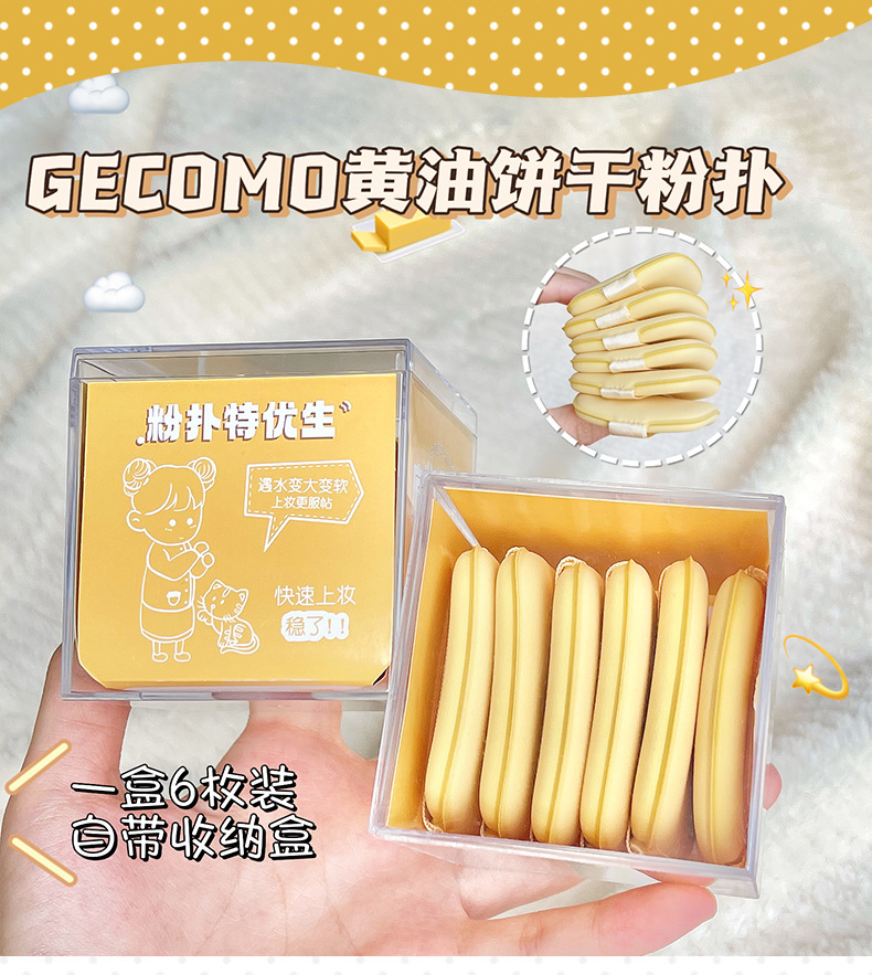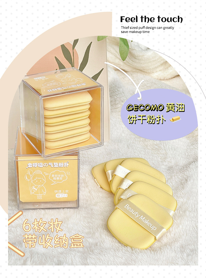 GECOMO 버터 비스킷 에어쿠션 파우더 퍼프 건식 및 습식 이중 사용 파우더 퍼프 첨부 베이스 메이크업 붙지 않음 파우더 에어쿠션 파우더 퍼프스토어 가기