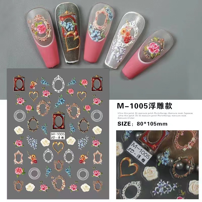 신기술 3 차원 네일 아트 접착 스티커 엠보싱 바로크 복고풍 프랑스 사진 프레임 M-1005 쉽게 찢어지기 쉽습니다.