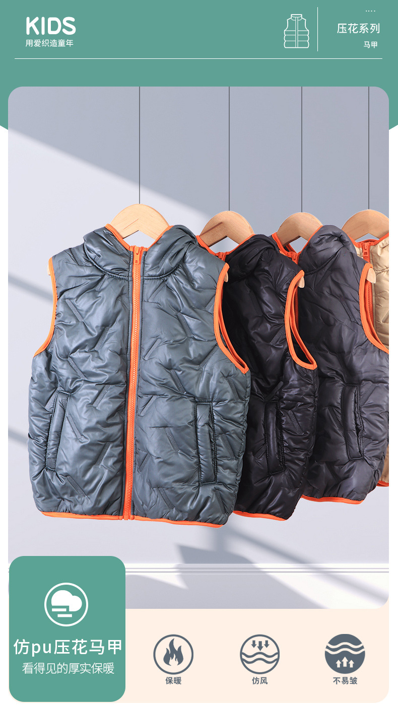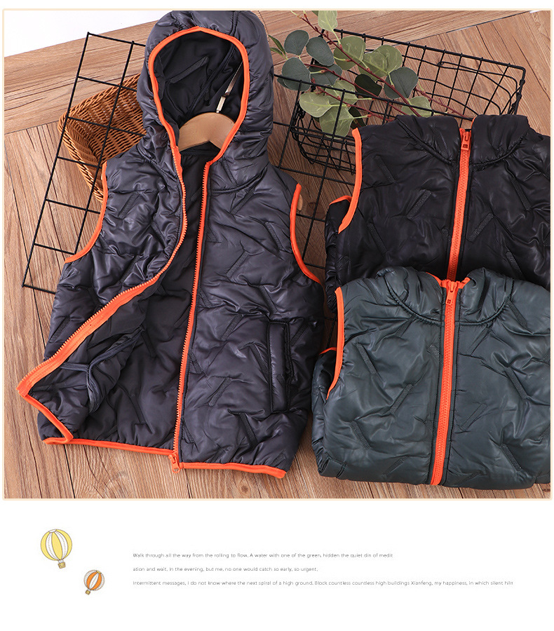 어린이 기모 조끼 가을과 겨울 소년과 소녀를위한 새로운 스타일 겉옷 어깨 실크 면 후드 따뜻한 조끼 두꺼운스토어 가기