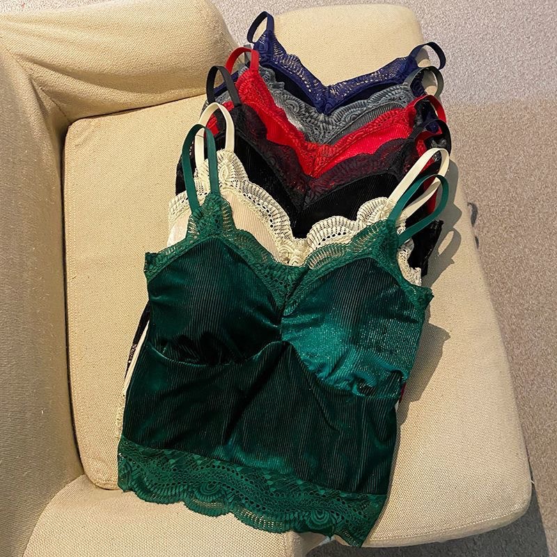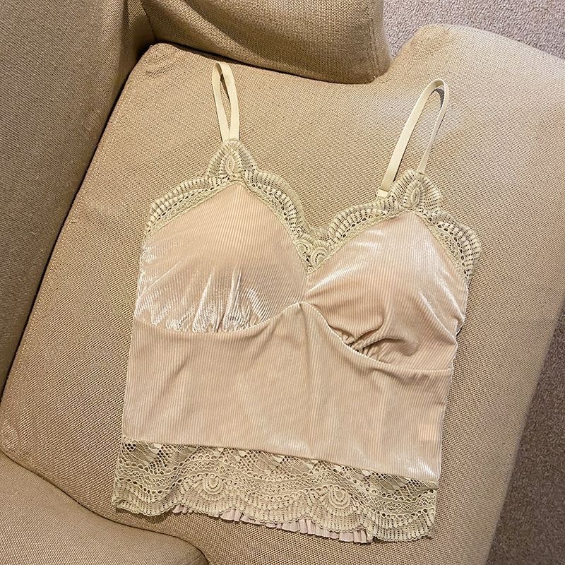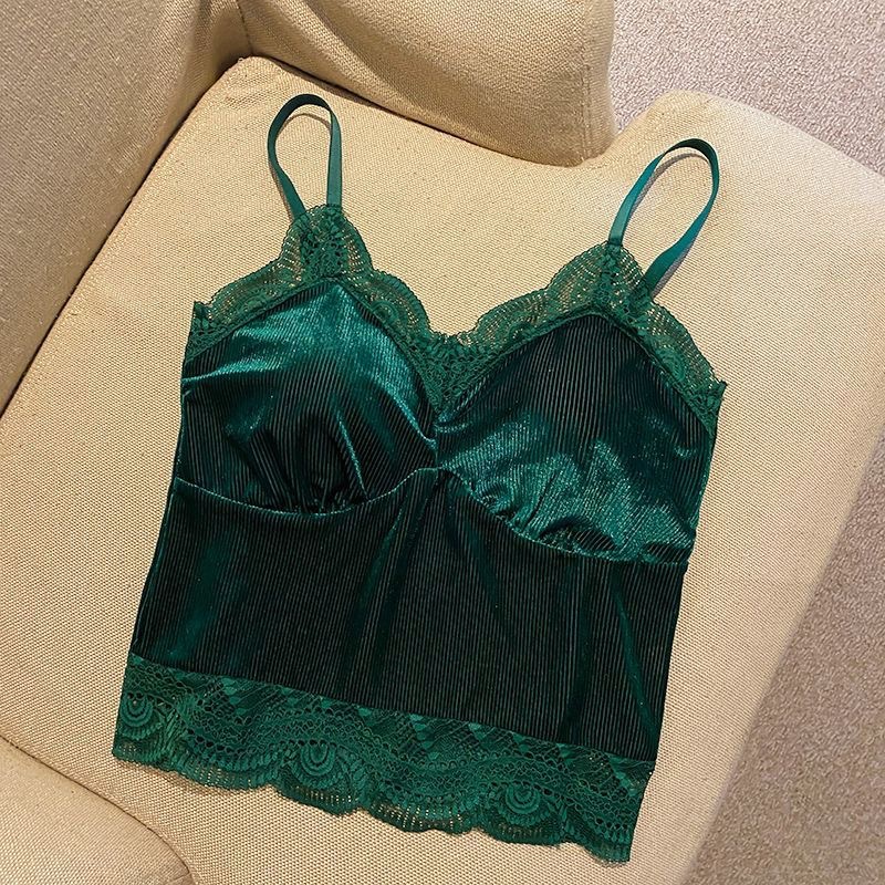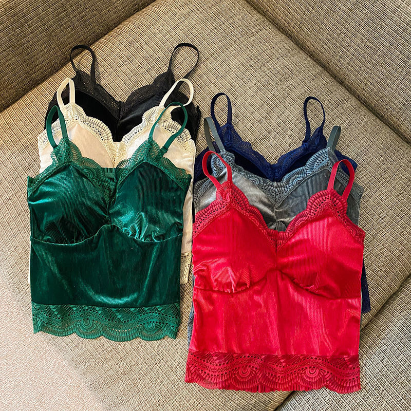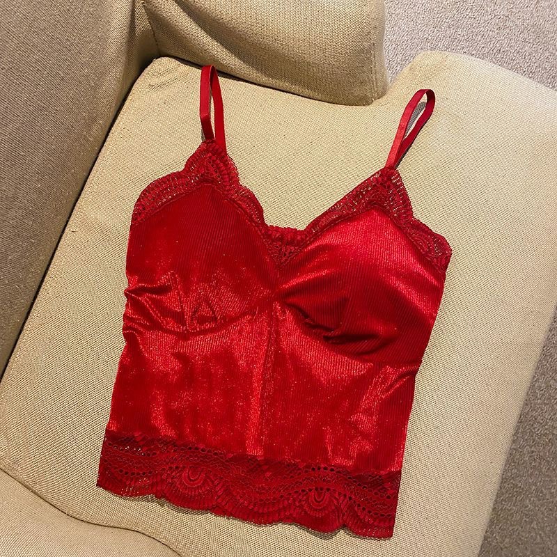 새로운 코듀로이 스티칭 레이스 섹시 슬림 핏 탑 아름다운 등 얇은 어깨 캐미솔 여성 연예인 우아한 인테리어스토어 가기