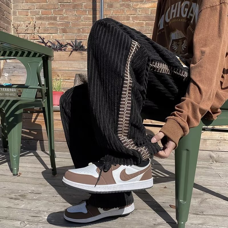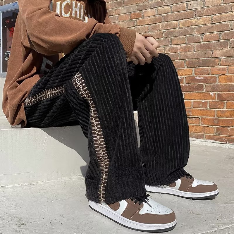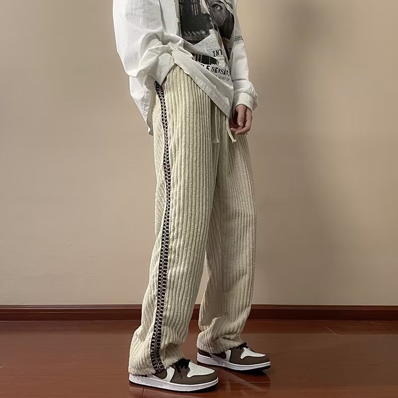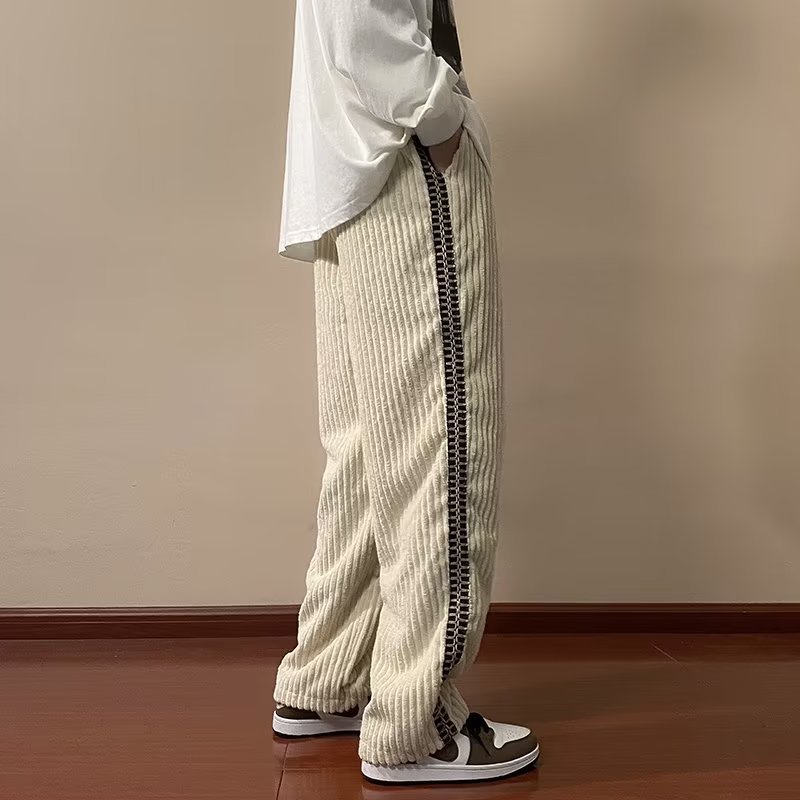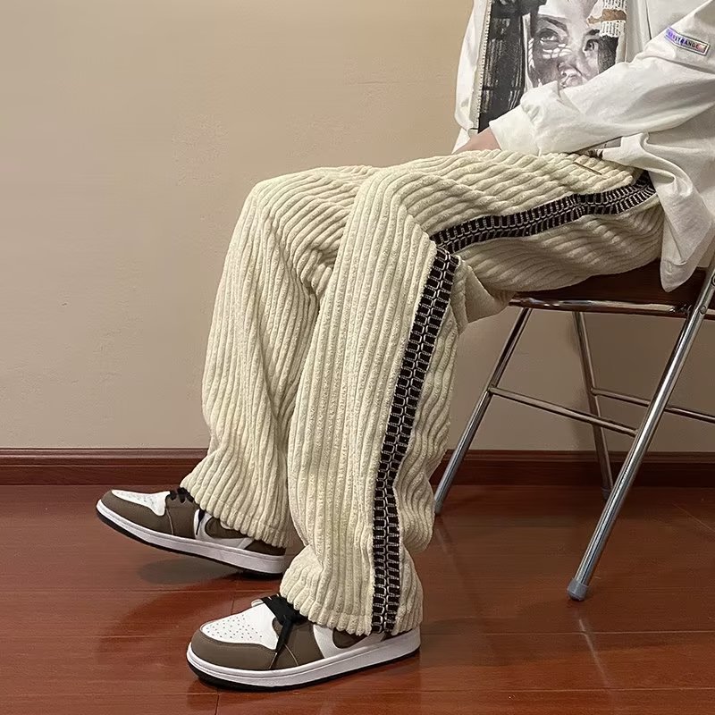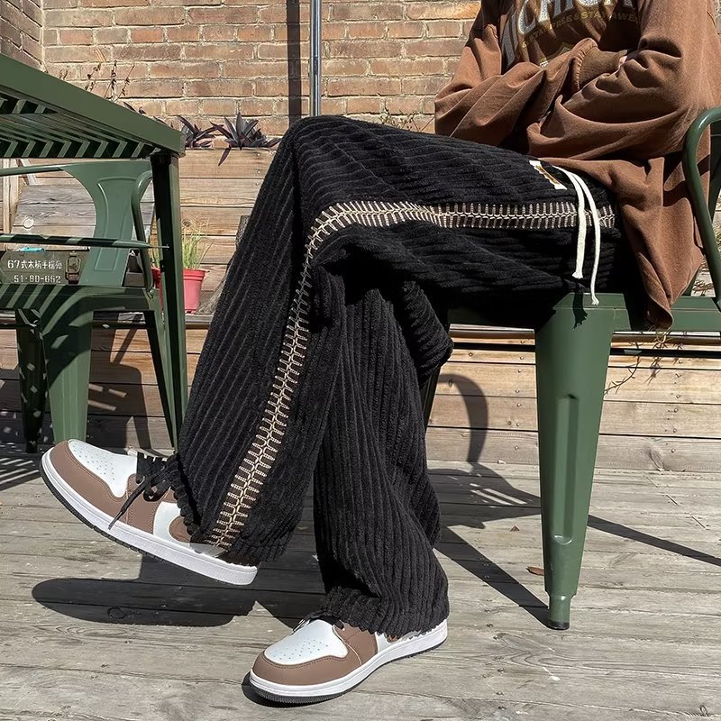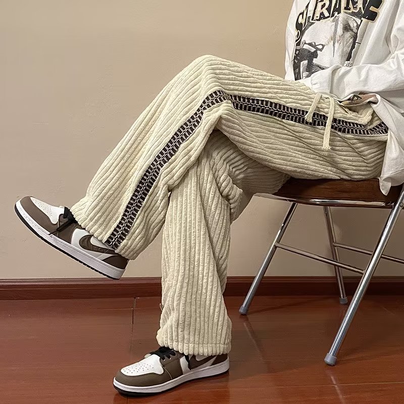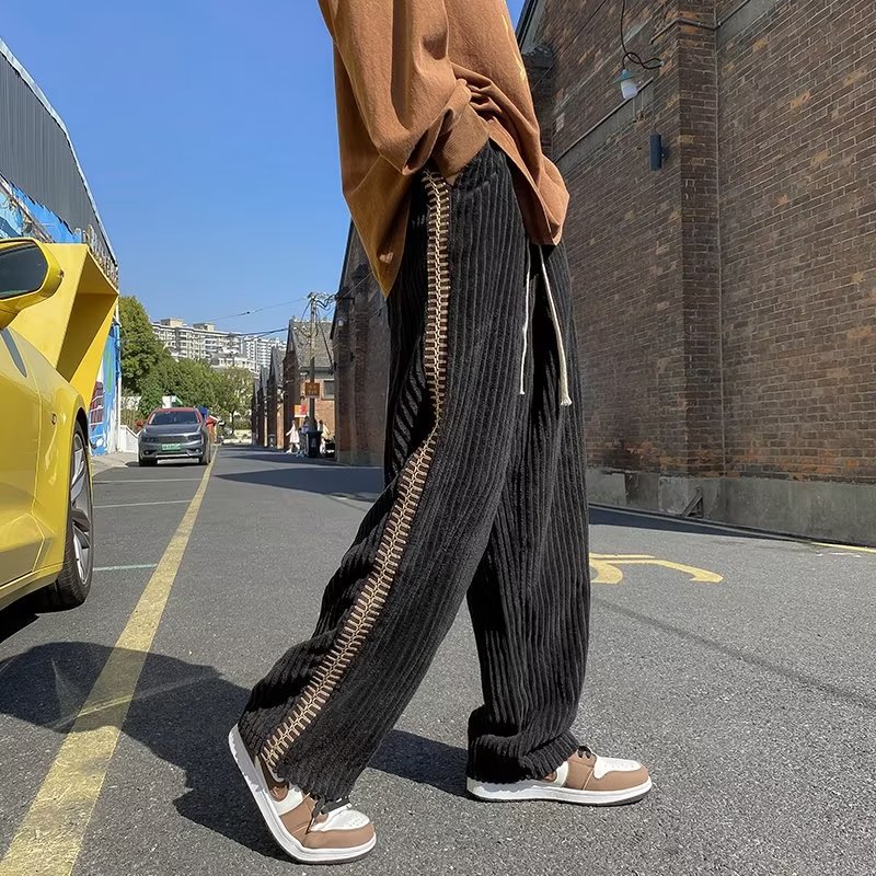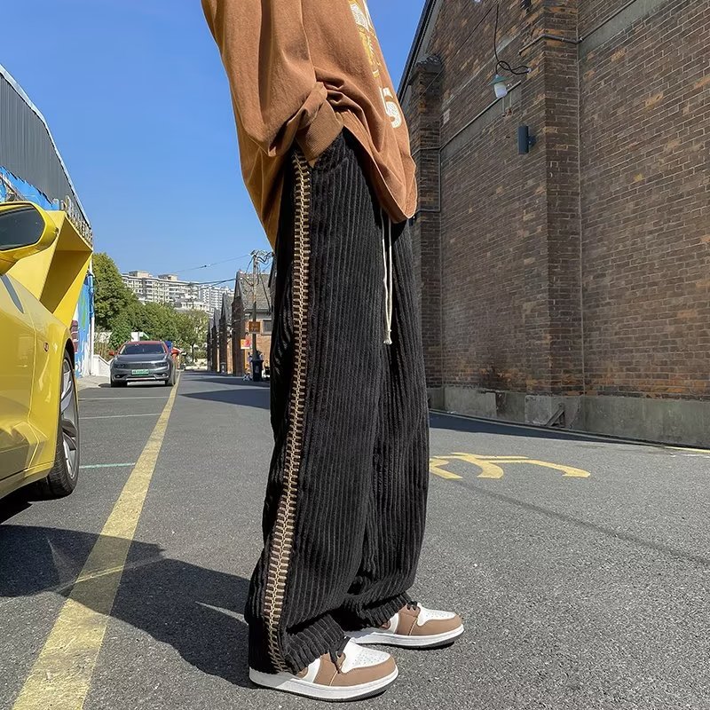 남성과 여성을위한 디자인 센스 틈새 코듀로이 캐주얼 바지 겨울 따뜻한 두꺼운 느슨한 스트레이트 다리 와이드 레그 바지 유행 헤어