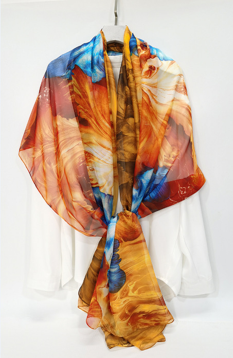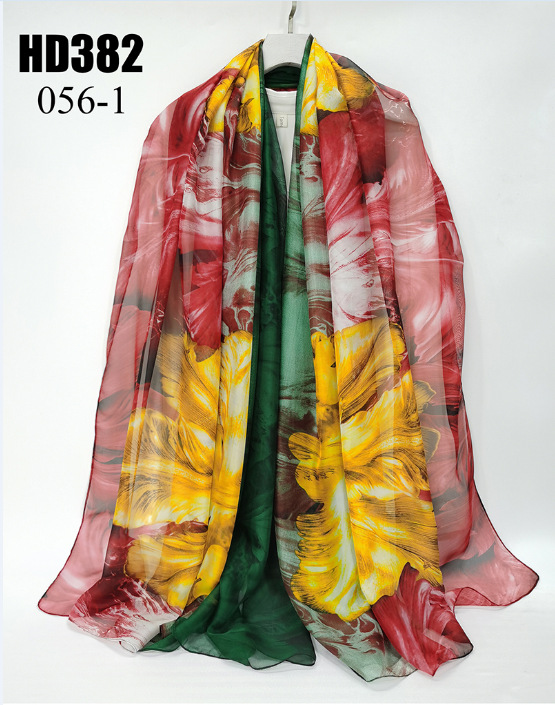 봄과 가을 여성의 실크 스카프 새로운 쉬폰 대형 롱 스카프 비치 스카프 해변 자외선 차단제 숄 스카프 긴 스카프