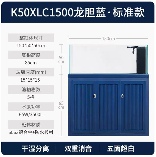 • 용담 블루 150cm 길이 × 50cm 너비 × 135cmmg 높은 캐비닛 85cm 높이