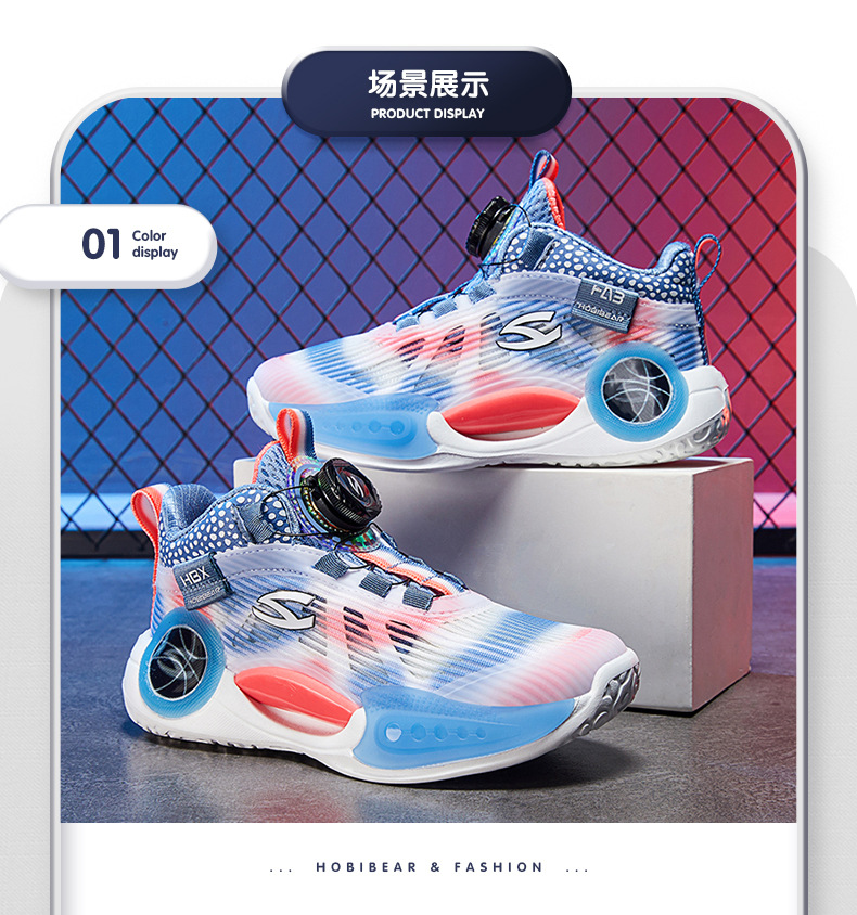 Habibie 어린이 신발 봄 2024 회전 버클 농구화 청소년 조수 신발 소년 운동화 머리카락 세대