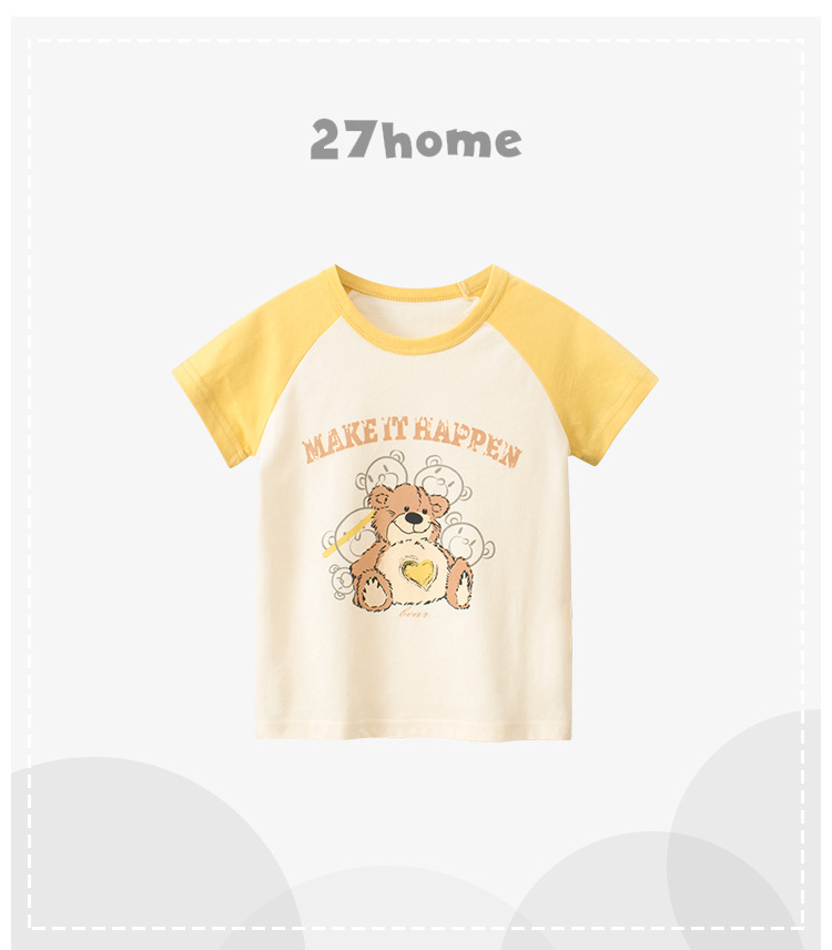 아동복 여름의 한국어 버전 새로운 27 가정 소녀 만화 곰 아기 옷 어린이 반팔 티셔츠 도매