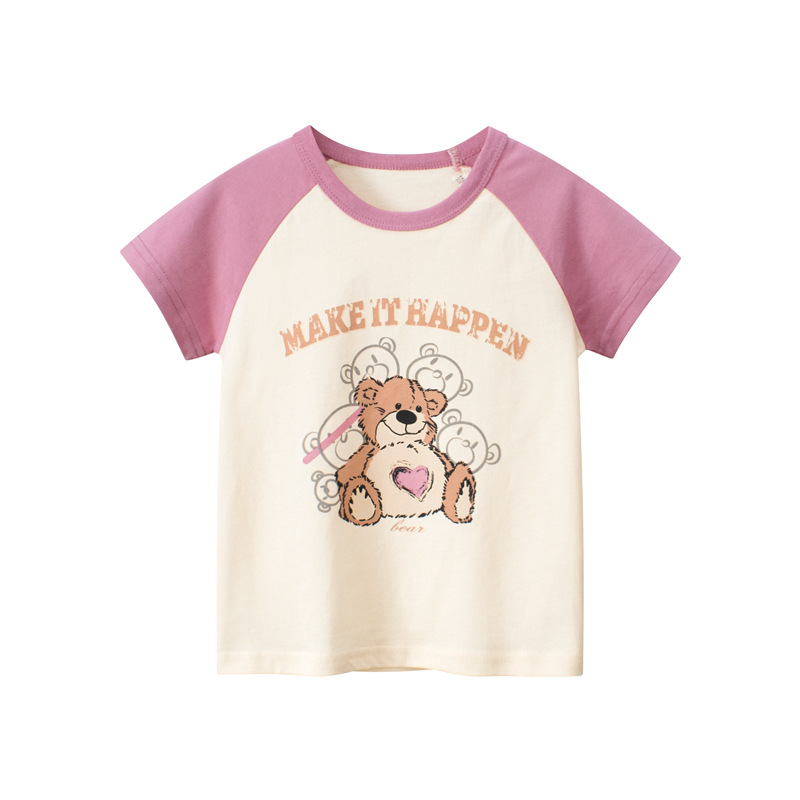 아동복 여름의 한국어 버전 새로운 27 가정 소녀 만화 곰 아기 옷 어린이 반팔 티셔츠 도매스토어 가기