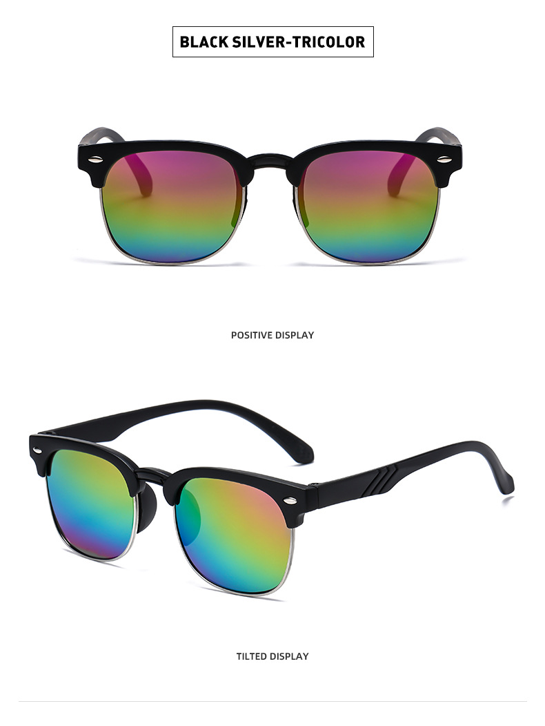 한국 스타일 패션 메탈 미니어처 어린이 선글라스 자외선 차단 반프레임 컬러 렌즈 야외 유아용 선글라스
