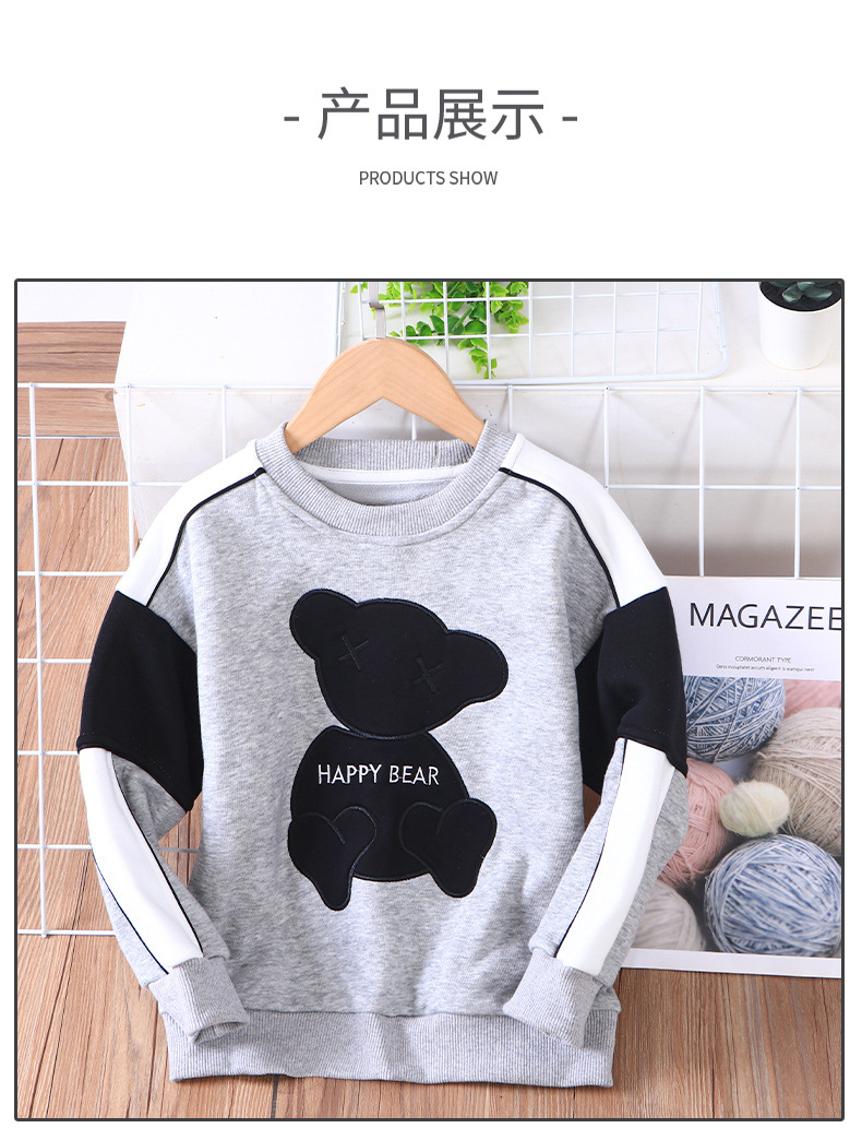 어린이 기모 스웨터 가을과 겨울 기모 두꺼운 소년과 소녀 가을과 겨울 만화 곰 크루넥 풀오버 베이스 셔츠스토어 가기