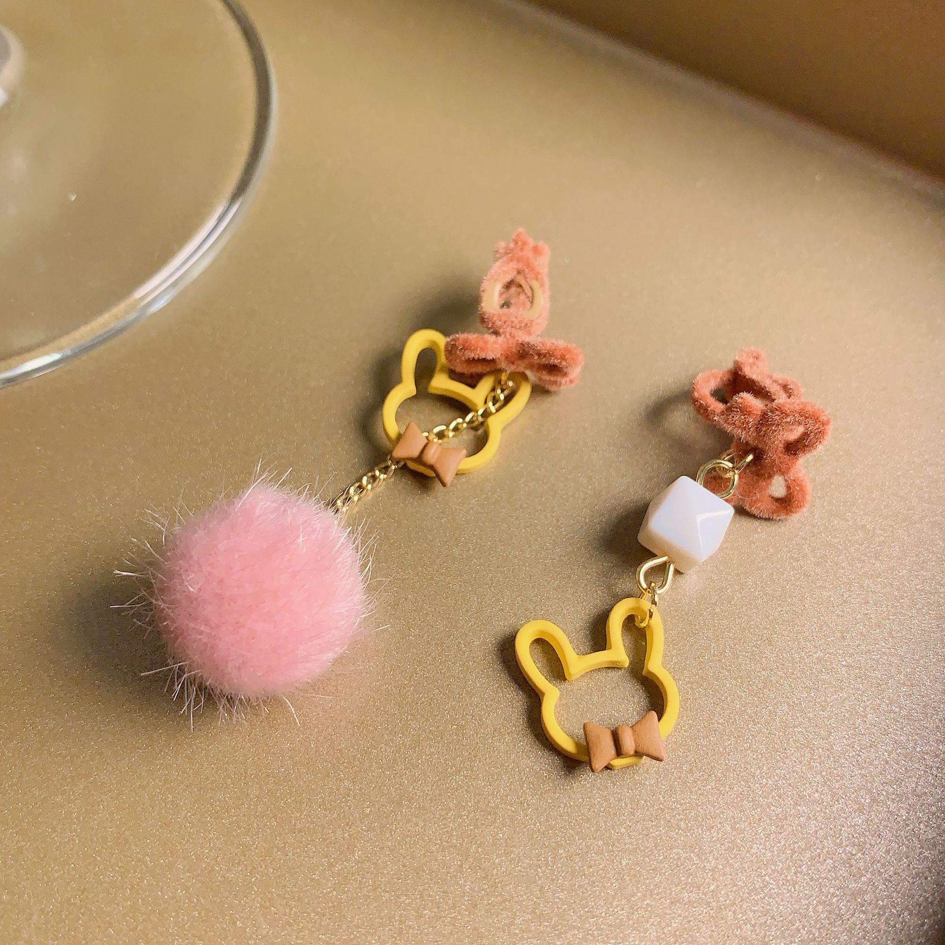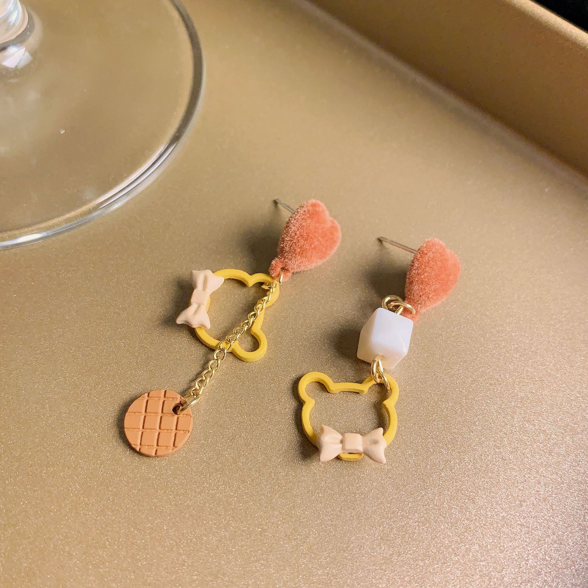 S925 실버 바늘 사랑 곰 가을과 겨울 비대칭 귀걸이 귀 구멍이없는 귀여운 소녀 귀 클립 도매스토어 가기