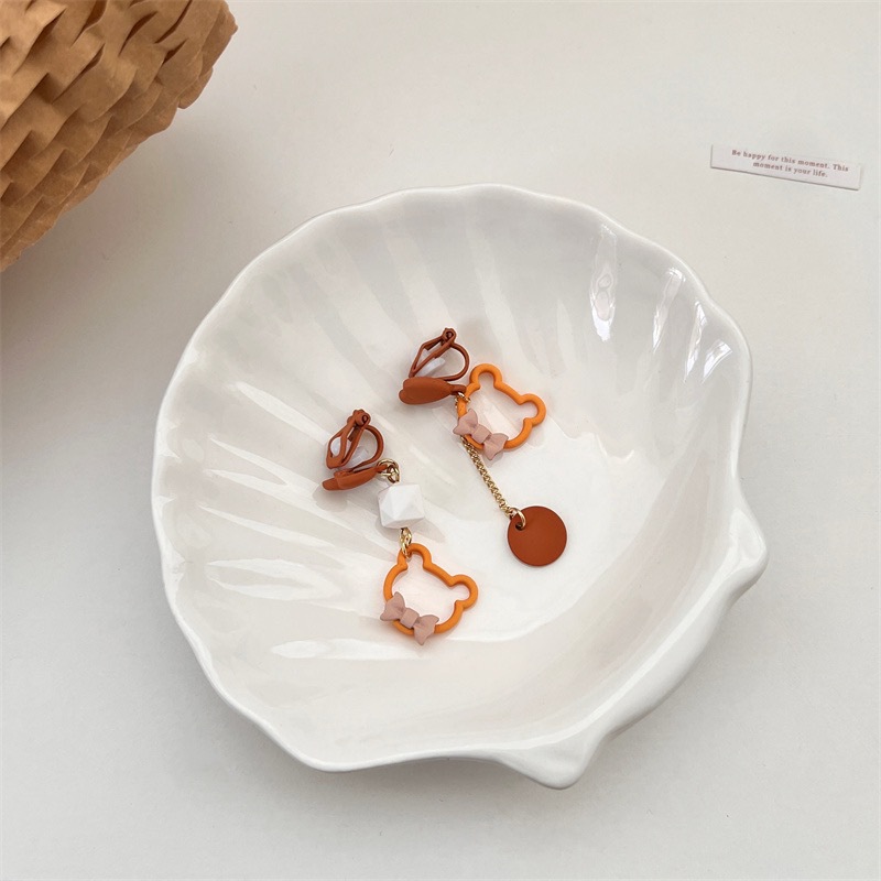 S925 실버 바늘 사랑 곰 가을과 겨울 비대칭 귀걸이 귀 구멍이없는 귀여운 소녀 귀 클립 도매