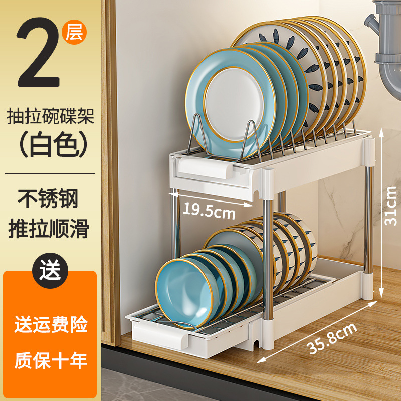 주방 서랍 접시 보관 랙 레이어드 파티션 캐비닛 내부 접시 식기 캐비닛 그릇 풀 아웃 스토리지 랙