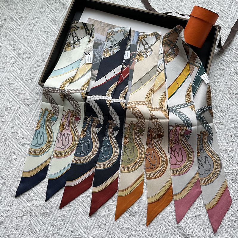 마야 정글백 핸들 실크 스카프 프랑스 스타일 100 뽕나무 실크 스카프 모든 매치 여성용 실크 스카프 헤어 밴드
