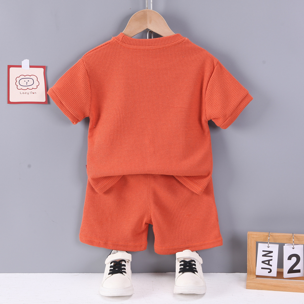 2023 여름 아동 세트 뉴 심플 자수 캐주얼 아동 반팔 반바지 투피스 세트 공장 스트레이트 헤어