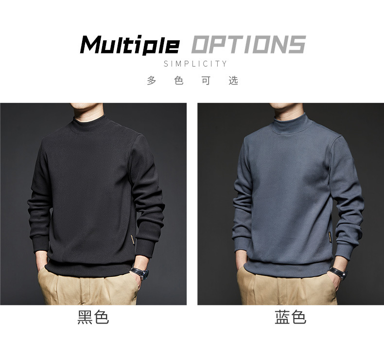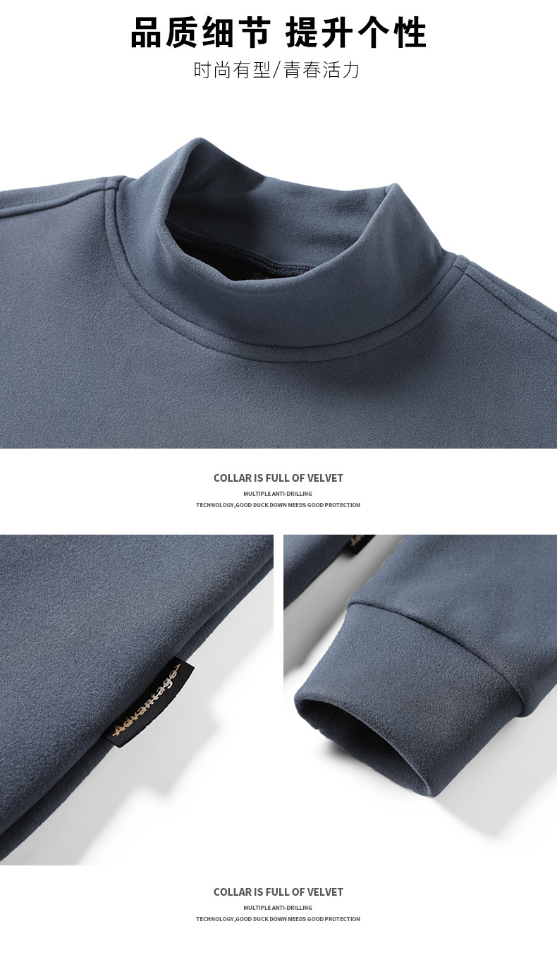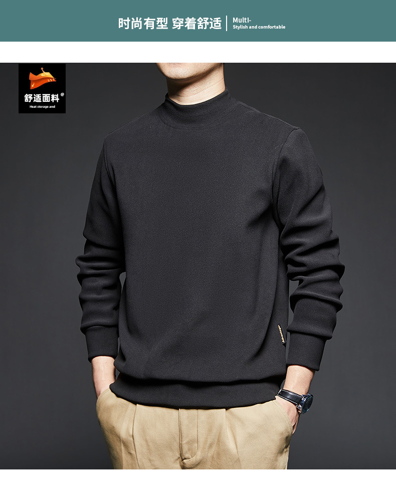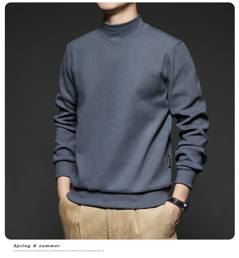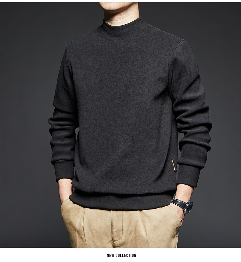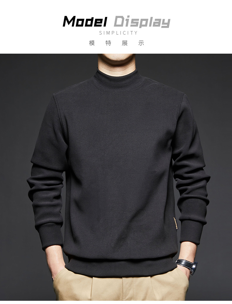 하프 하이 칼라 양털 베이스 셔츠 남성용 트렌디 브랜드 슬림핏 탑 양면 양털 스웨터 두꺼운 따뜻한 내부 긴팔 티셔츠