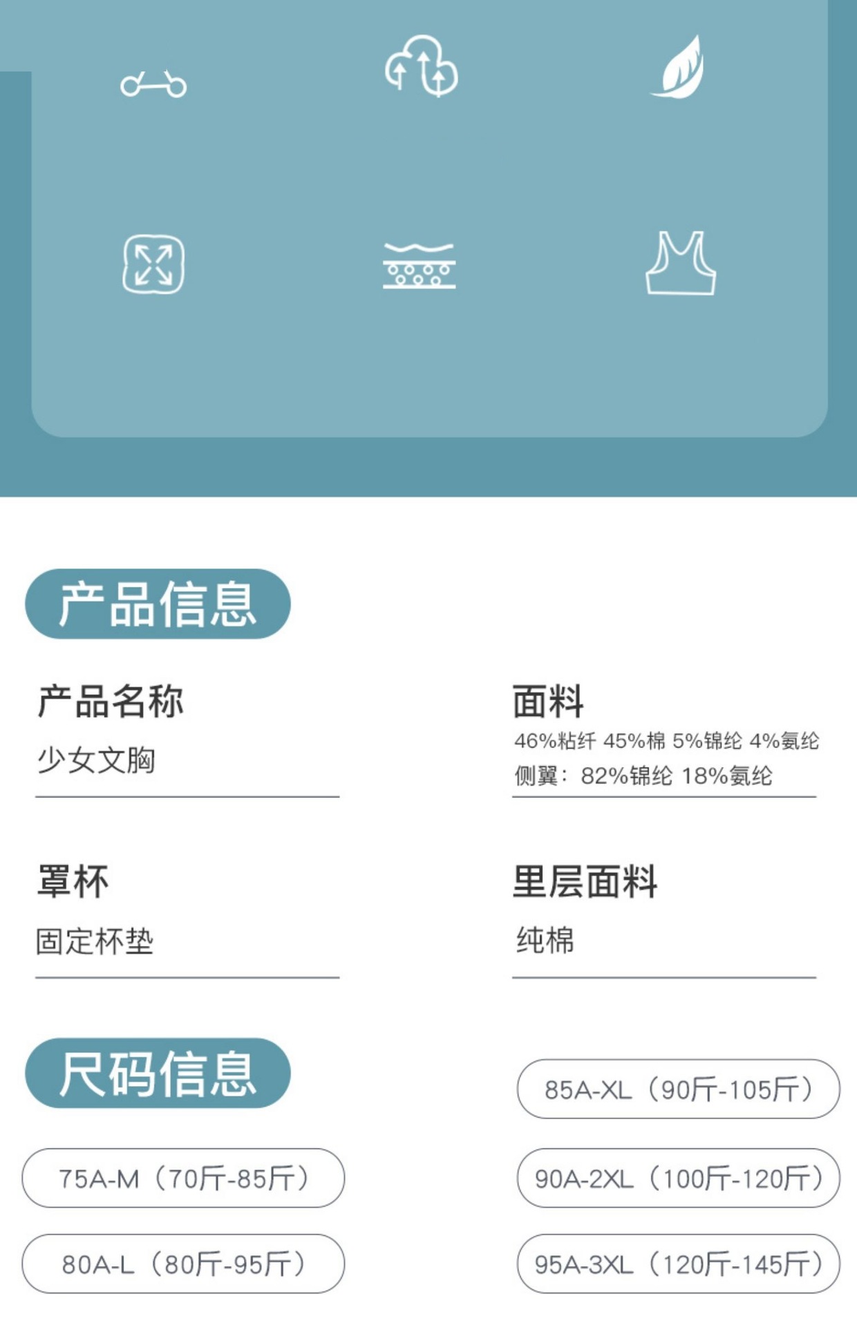 여아 브라 스포츠 속옷 여자 중학생 고등학생 사춘기 발달 내진 여아 작은 조끼