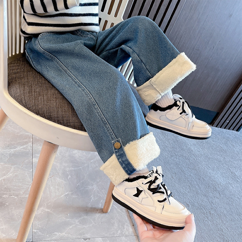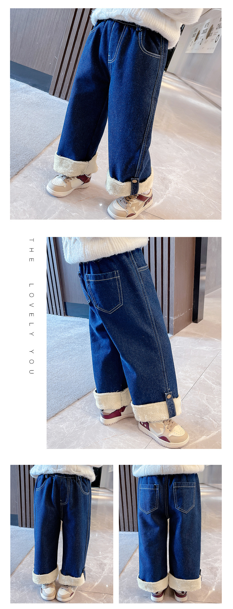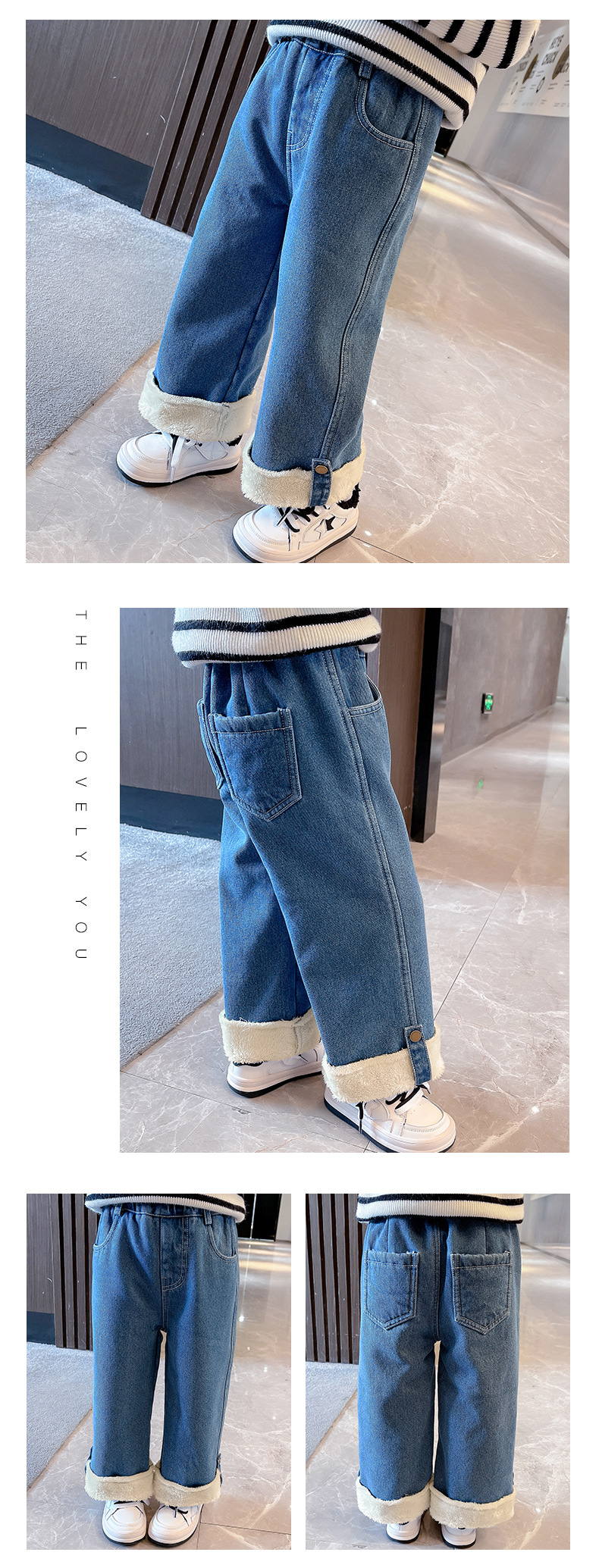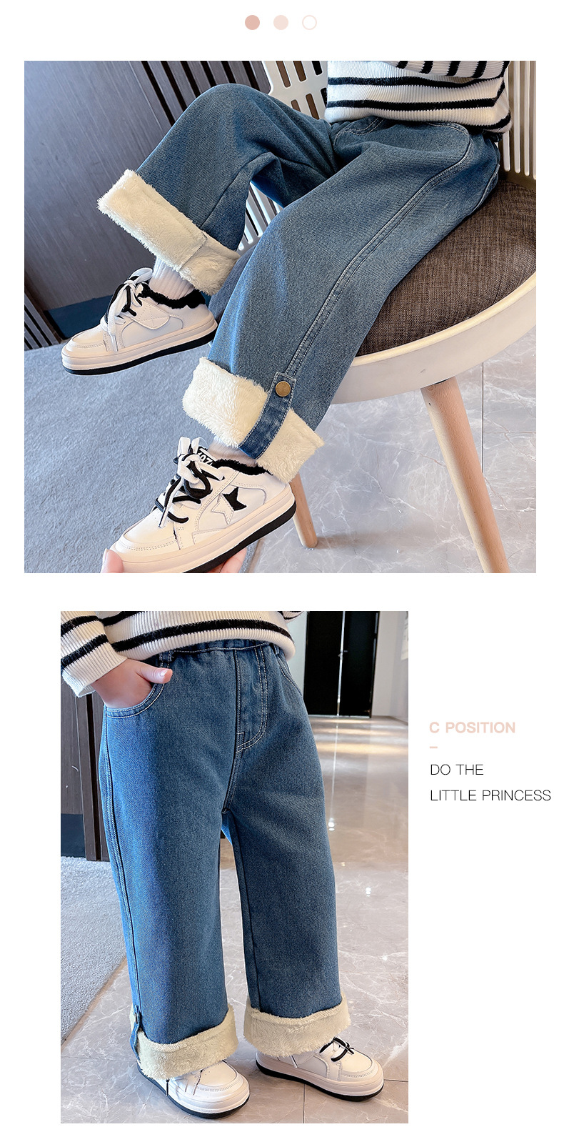 여아 겨울 청바지 아기의 서양식 어린이 개성 트렌디 한국 두꺼운 원피스 푹신한 가장자리 유행 와이드 팬츠