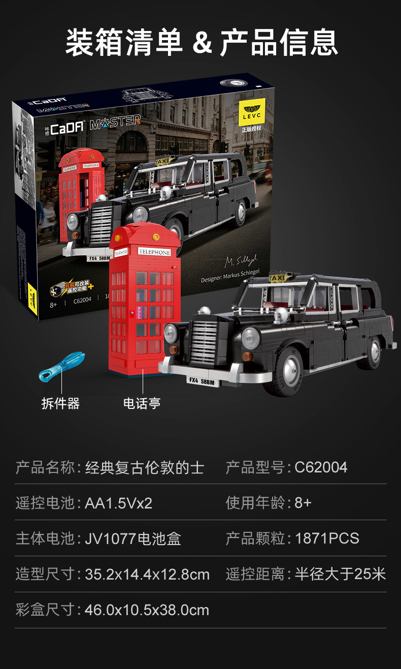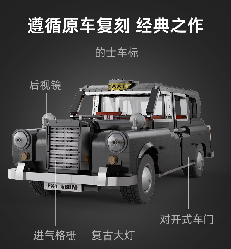Double Eagle C62004 런던 택시 1:12 작은 입자 조립 자동차 모델 어린이 교육 빌딩 블록 장난감스토어 가기