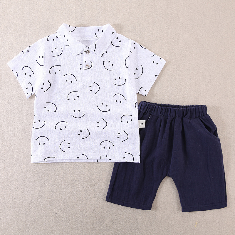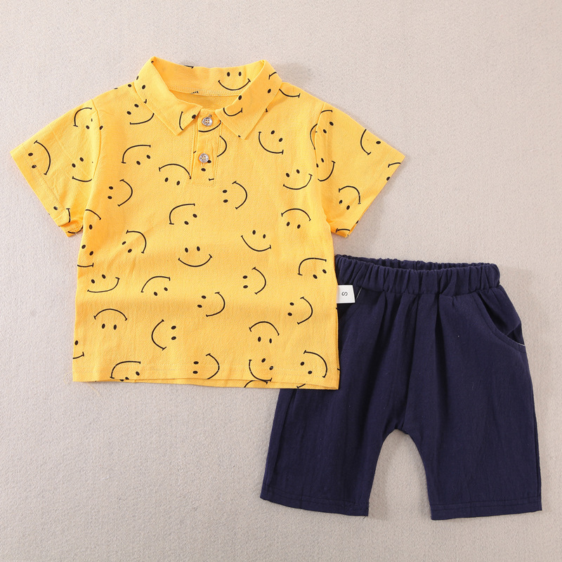 0-5 세 어린이 반팔 세트 여름 소년 만화 스마일 폴로 셔츠 어린이 셔츠 크로스 보더 헤어스토어 가기