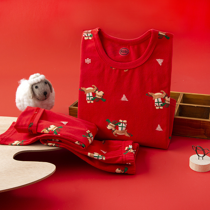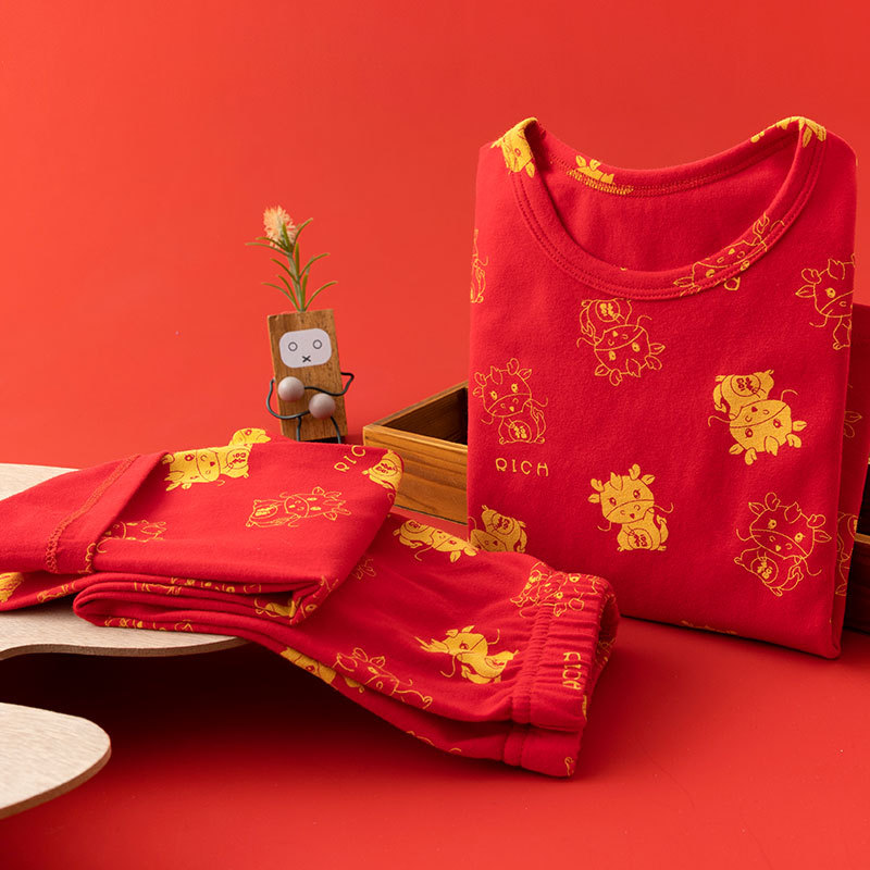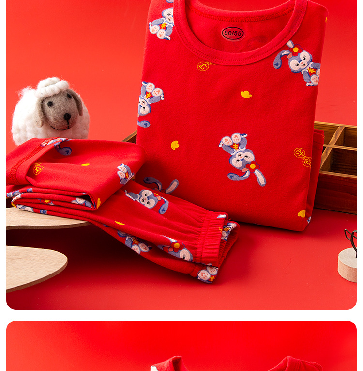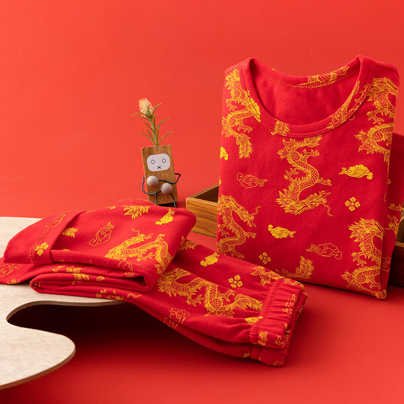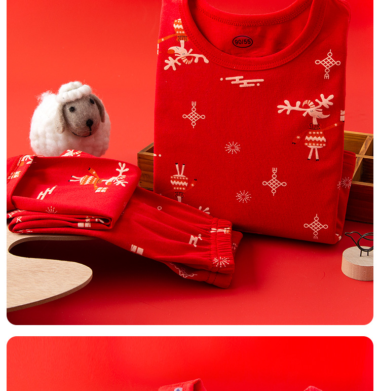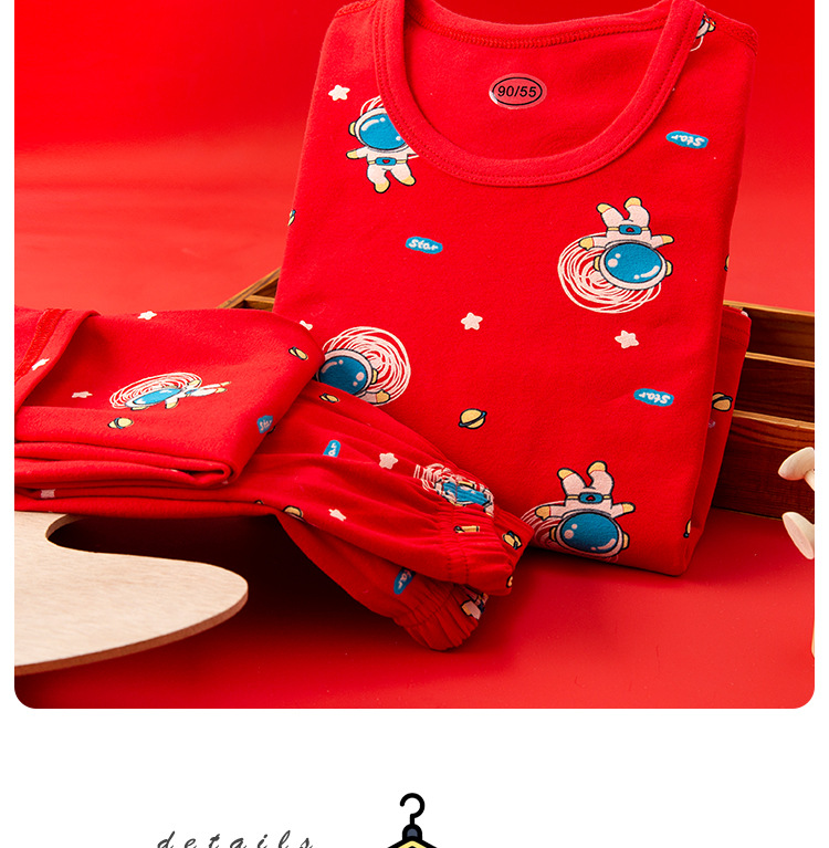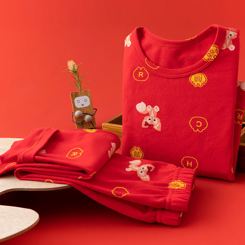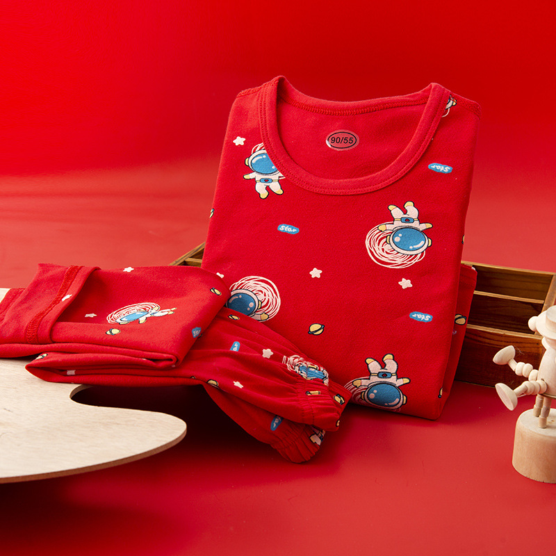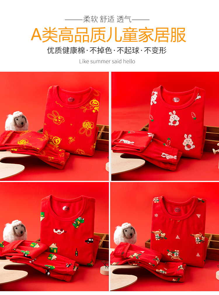 동북 큰 꽃 소년 소녀 가을 옷 가을 바지 신년 붉은 뼈없는 아기 잠옷을 세트 어린이 벌새 속옷스토어 가기