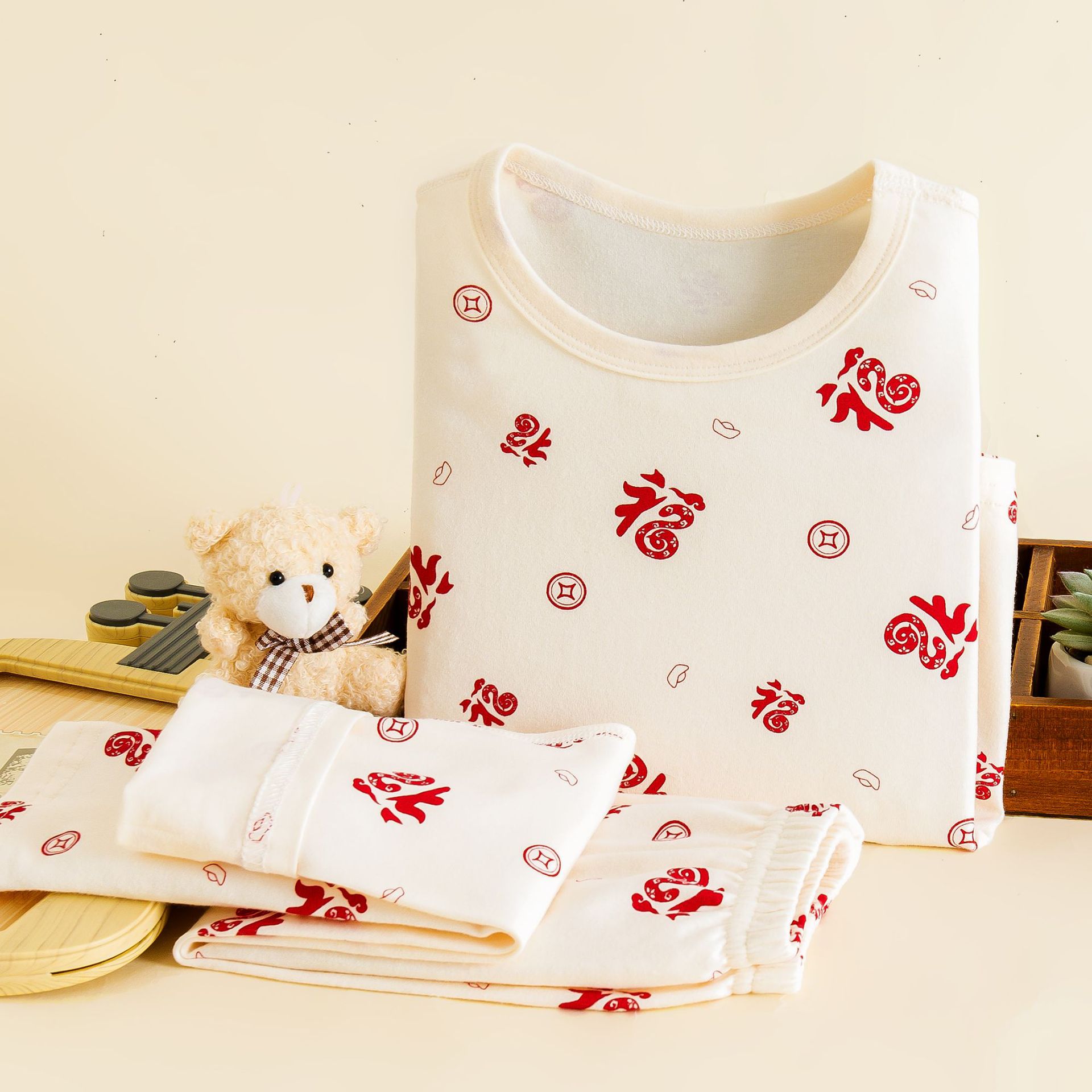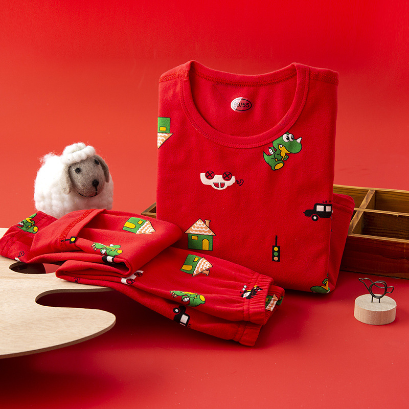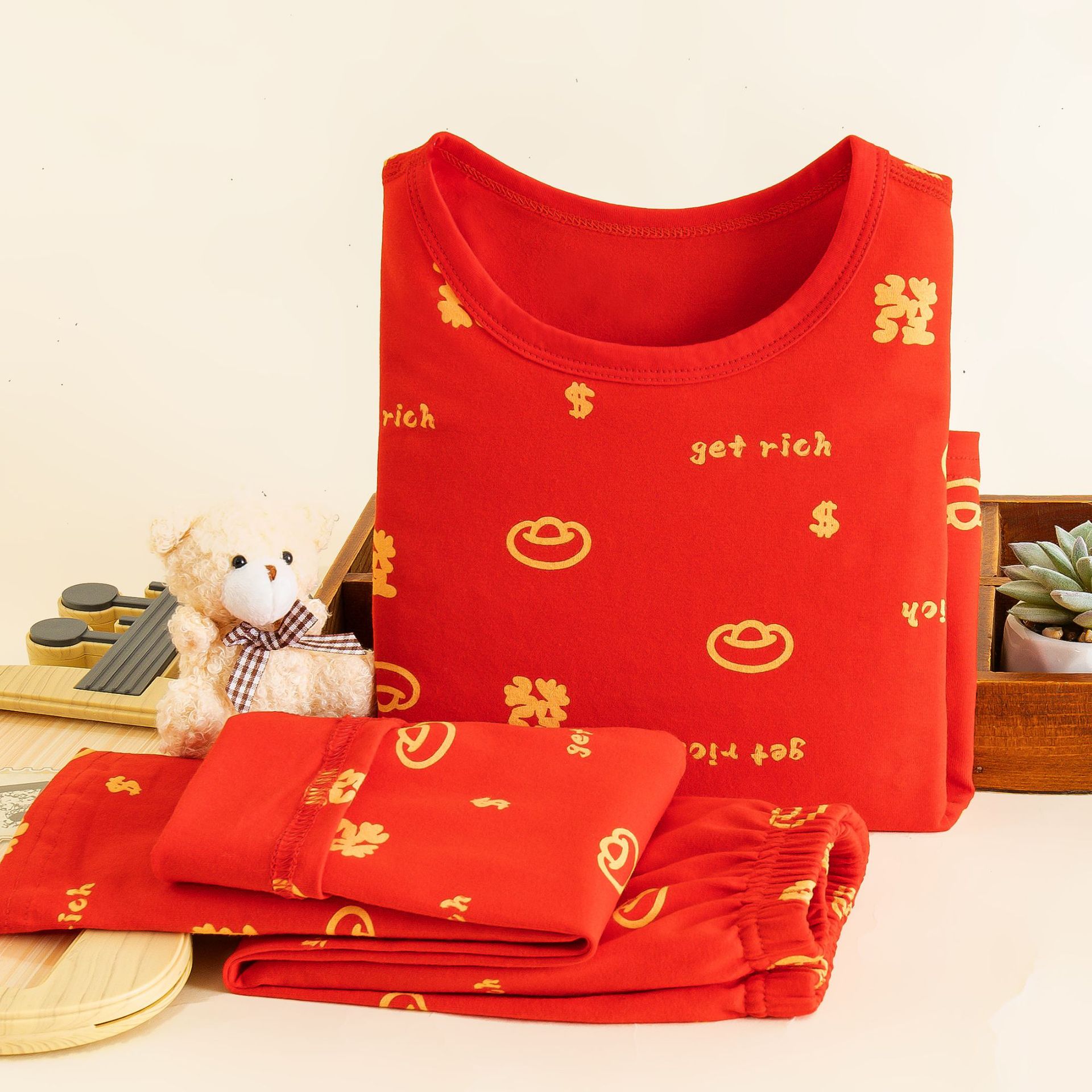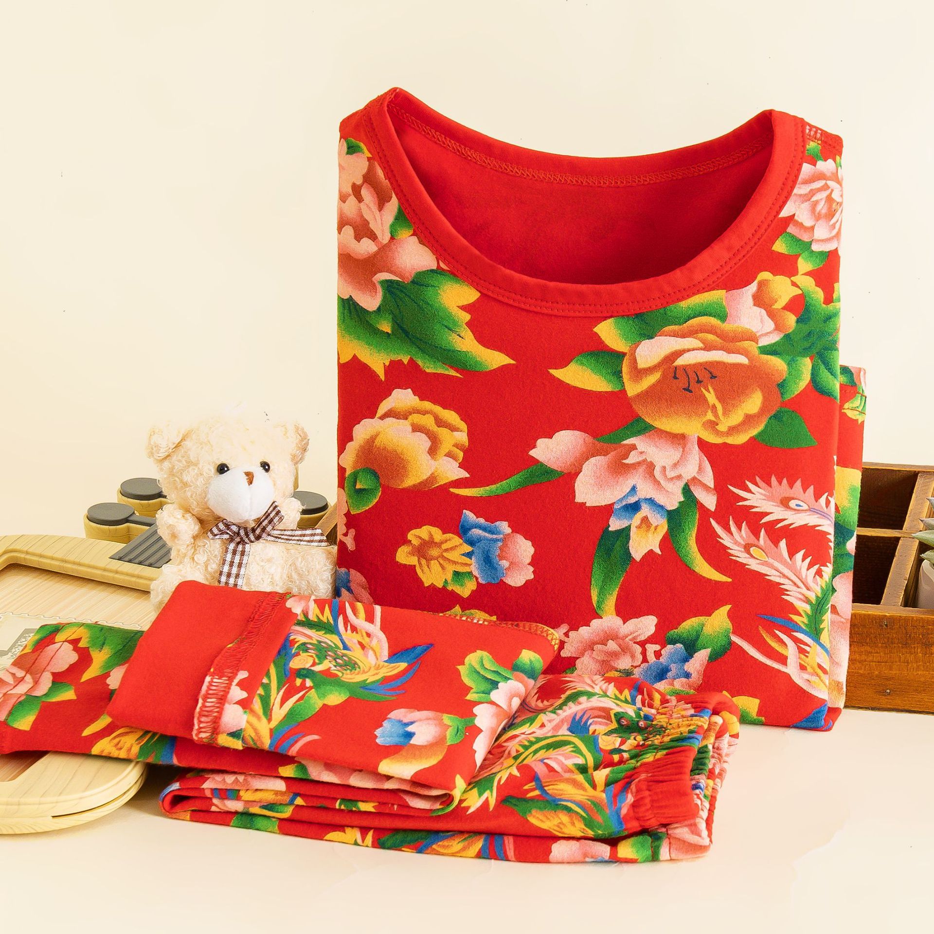 동북 큰 꽃 소년 소녀 가을 옷 가을 바지 신년 붉은 뼈없는 아기 잠옷을 세트 어린이 벌새 속옷