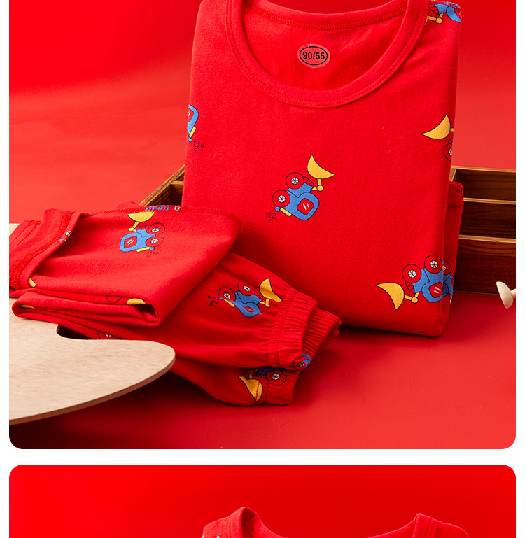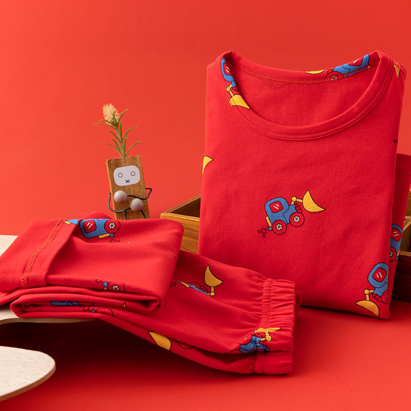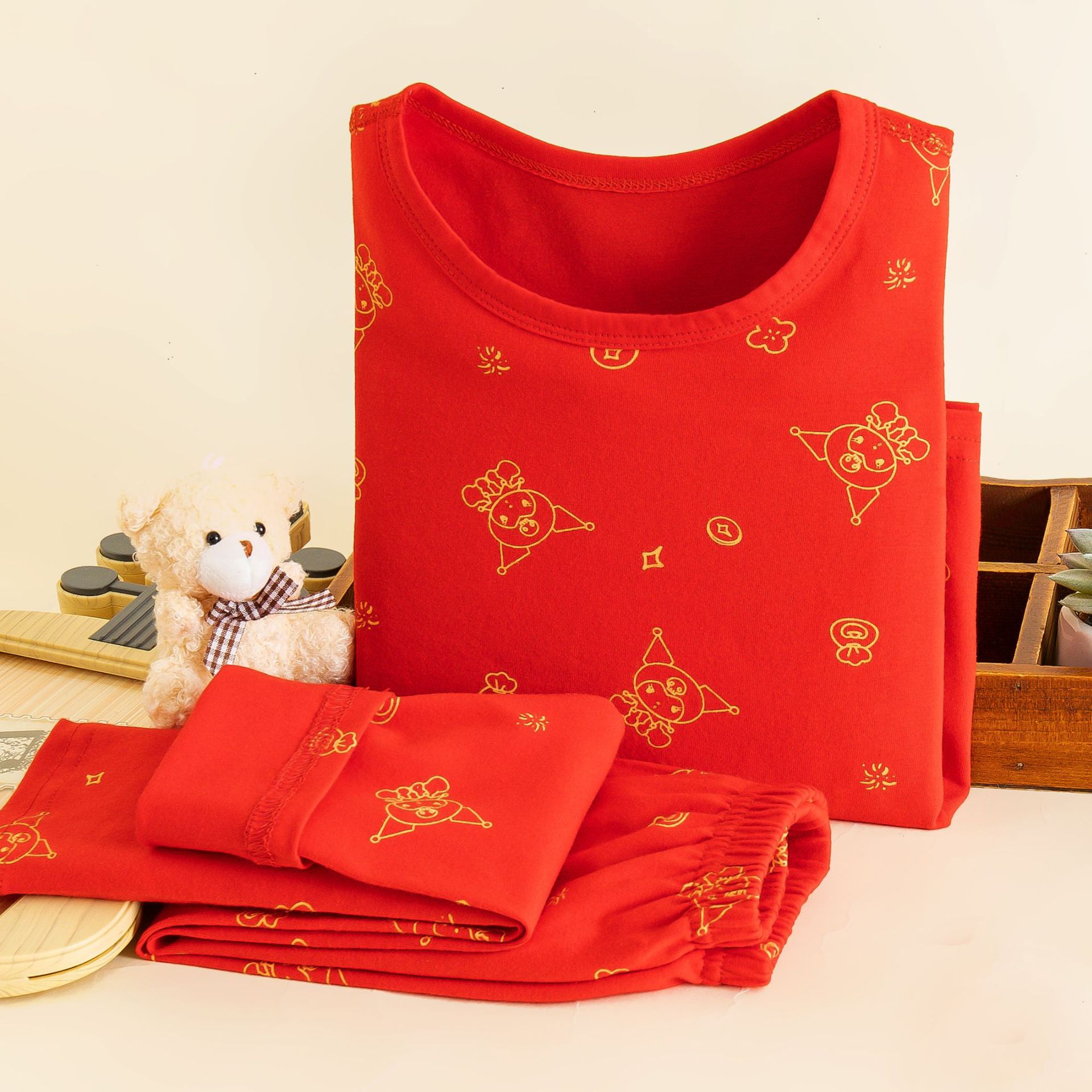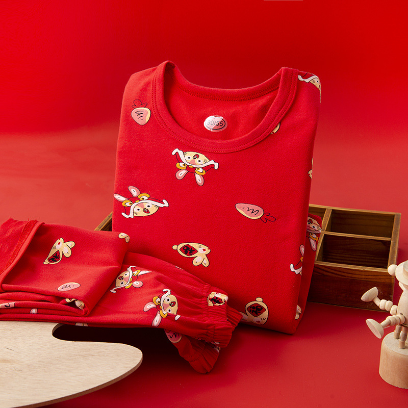 동북 큰 꽃 소년 소녀 가을 옷 가을 바지 신년 붉은 뼈없는 아기 잠옷을 세트 어린이 벌새 속옷