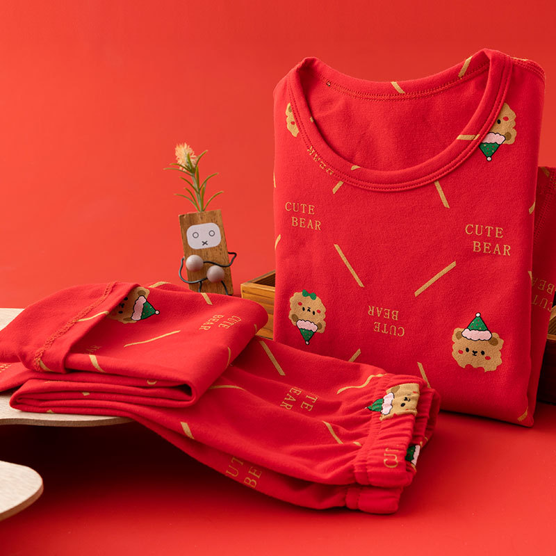 • 라운드 넥 뼈없는 새해 붉은 귀여운 곰