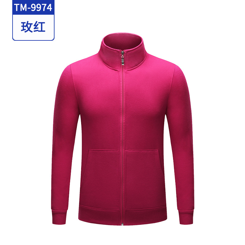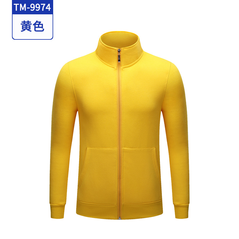 가을과 겨울 기모 스탠드 칼라 문화 셔츠 스웨터 사용자 정의 로고 긴 소매 카디건 지퍼 바지 코트 주문 제작 작업복스토어 가기