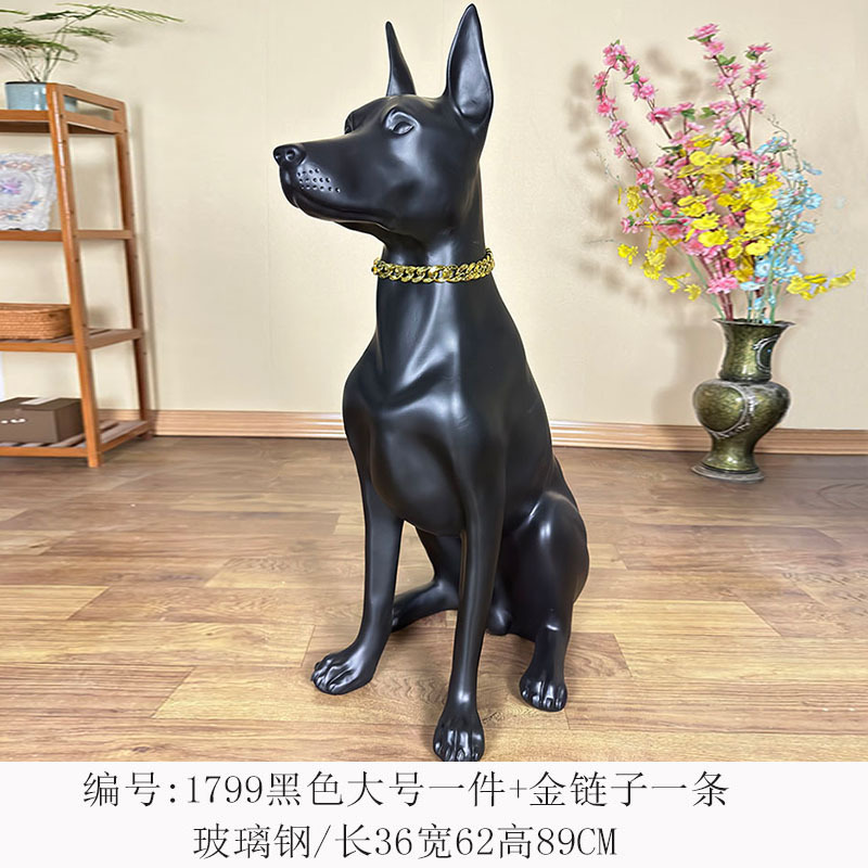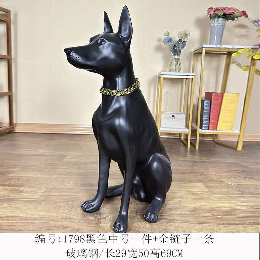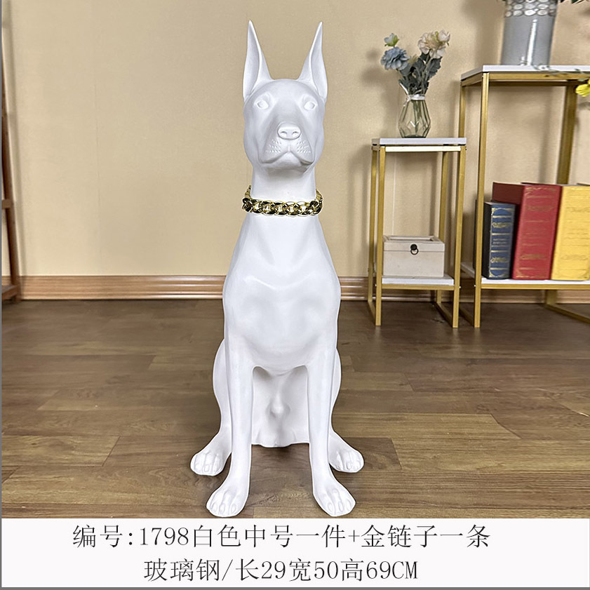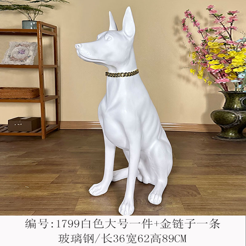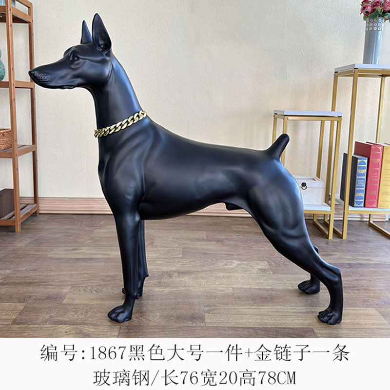 홈 거실 장식 시계 개 조각 시뮬레이션 도베르만 장식품 빌라 정원 문 대형 바닥에서 천장까지 안뜰