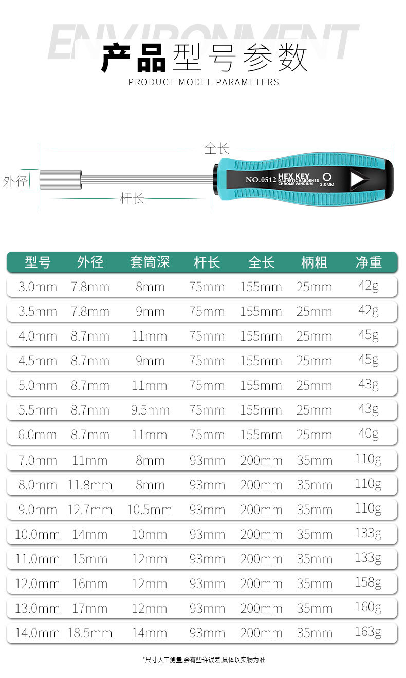 • 녹색 슬리브 드라이버 3-14mm, 총 15 개