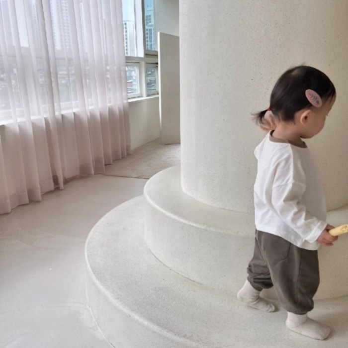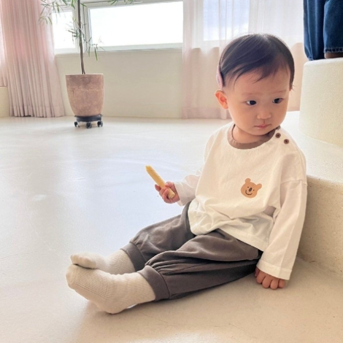 한국 스타일 순면 편안한 긴팔 티셔츠 아기 소년과 소녀를위한 곰을위한 간단한 캐주얼 베이스 셔츠 어린이 느슨한 싱글 티셔츠