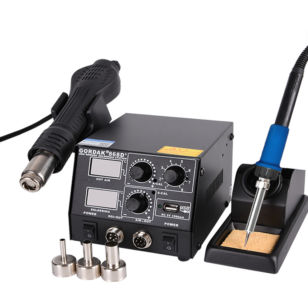 GORDAK Gaudi 868D + 열풍 총 납땜 스테이션 3-in-1 조정 가능한 무연 일정 온도 납땜 인두 휴대폰 컴퓨터 수리스토어 가기