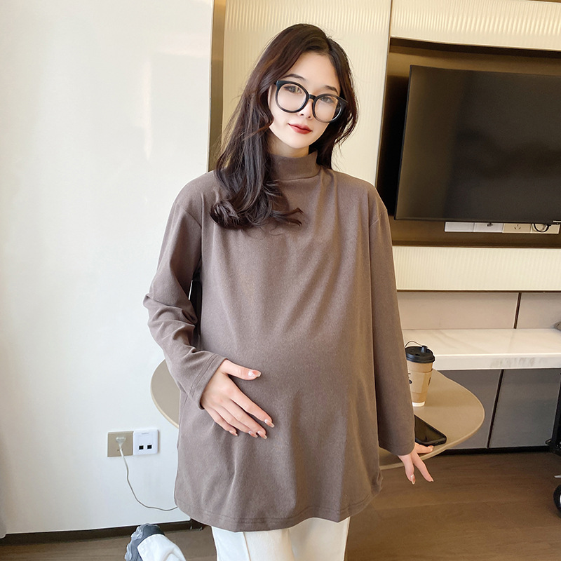 양면 독일산 벨벳 하프 터틀넥 이너웨어 여성용 봄 가을 겨울 임산부용 두꺼운 2025 여성용 보온 상의 패셔너블스토어 가기