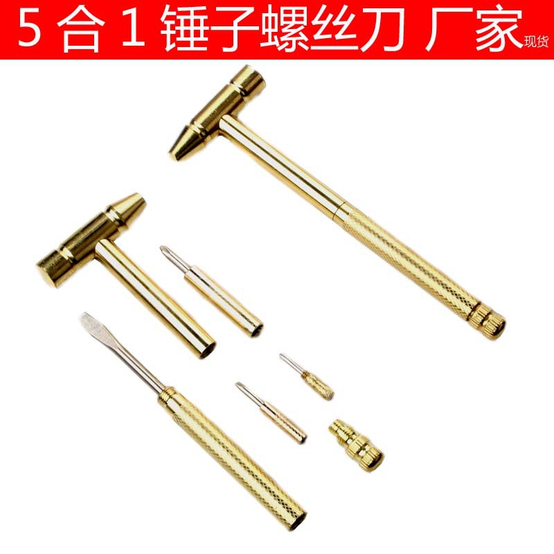 6合1多功能螺丝刀锤子迷你小铜锤锤家用小榔头多功能古铜色小锤子