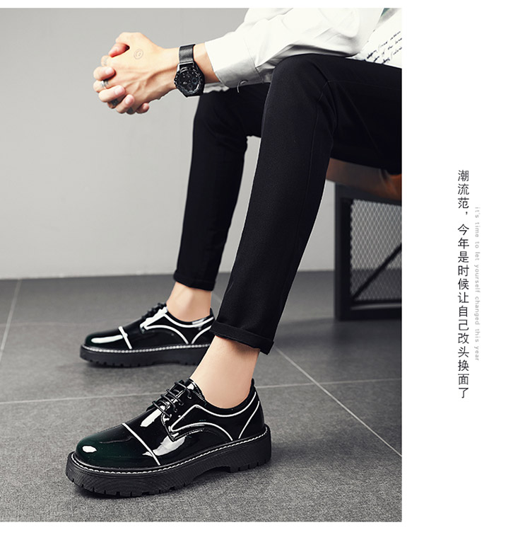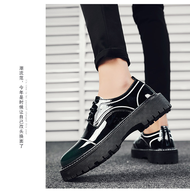밝은 가죽 신발 남성용 한국식 영국식 높이 증가 6cm 트렌디 한 두꺼운 밑창 높이 증가 10cm 스타일리스트 캐주얼 남성 신발스토어 가기