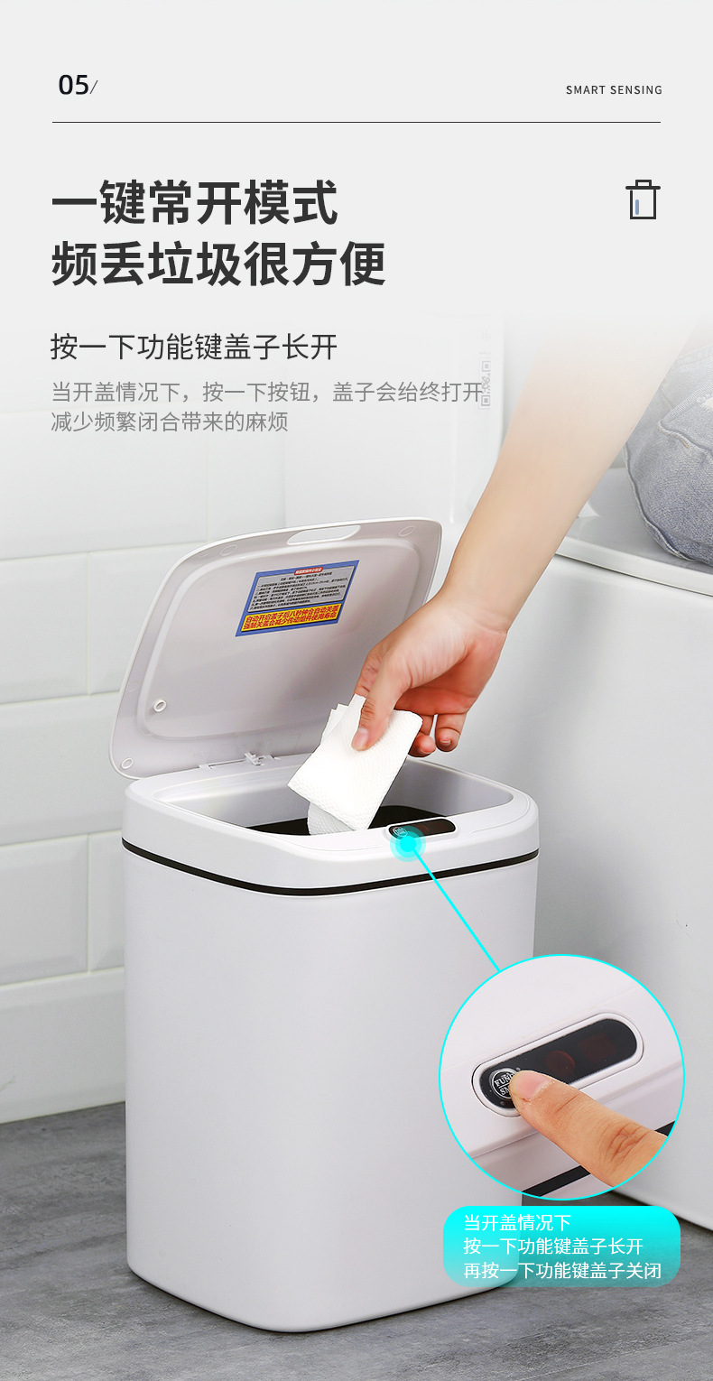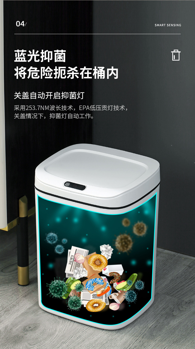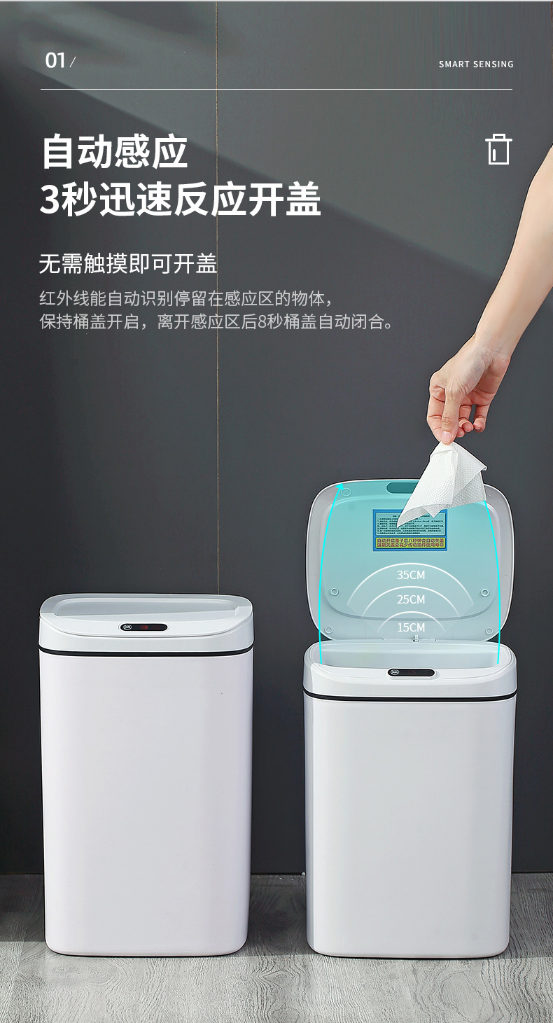 가정용 화장실 거실 주방 대형 자동 쓰레기통 전기 위생 버킷을위한 뚜껑이있는 유도 스마트 쓰레기통