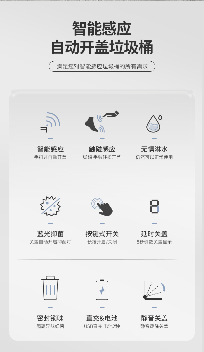 • 우아한 블랙 (12L) 킥은 8 초 동안 뚜껑을 열고 자동으로 뚜껑을 닫는 것은 매우 실용적입니다.