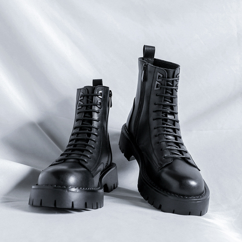 정품 가죽 마틴 부츠 남성용 하이 탑 영국 스타일 in 미드 탑 트렌디 짧은 부츠 작업복 남성용 지퍼 스트리트 오토바이 가죽 부츠