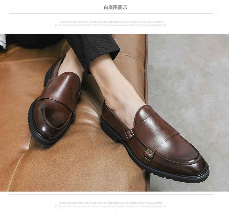 영국 버클 뾰족한 발가락 남성용 가죽 신발 한국 스타일 유행 내부 높이 스타일리스트 게으른 슬립온 플러스 사이즈 로퍼스토어 가기
