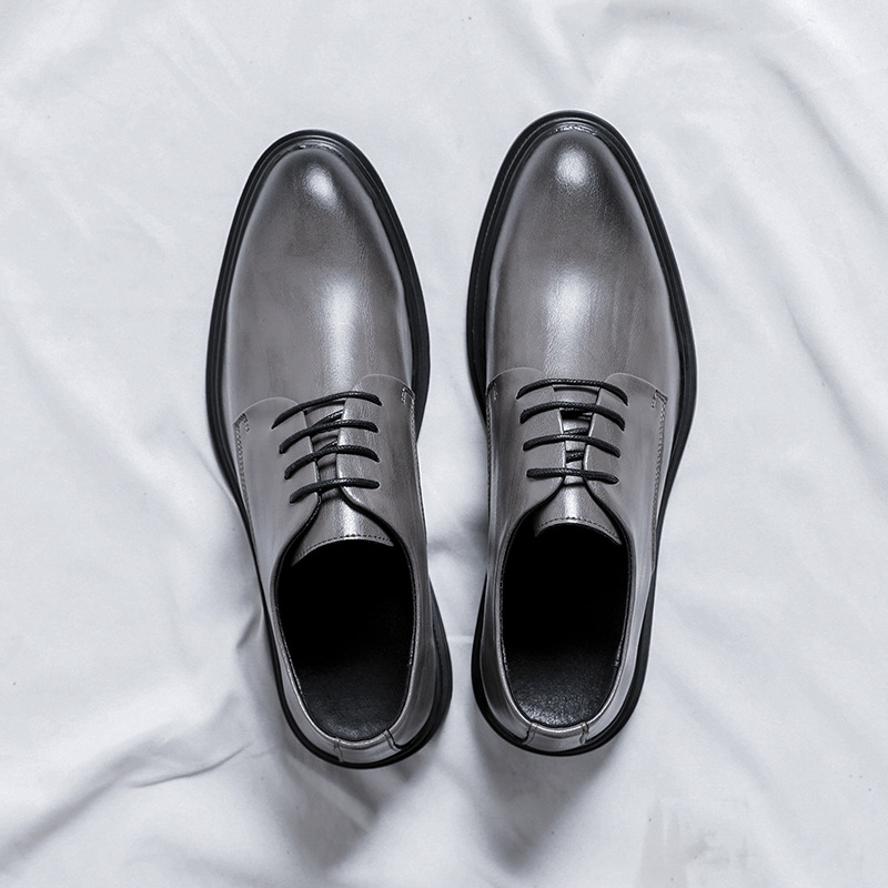 가죽 신발 남자의 새로운 비즈니스 원피스 그레이 캐주얼 봄과 가을 통기성 남자의 영국 한국 뾰족한 신랑 웨딩 신발
