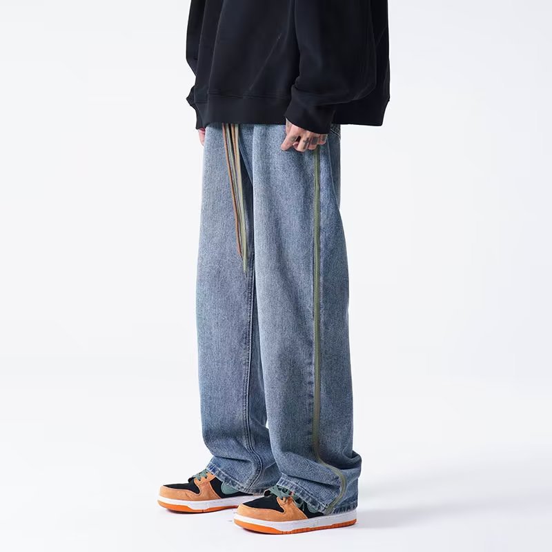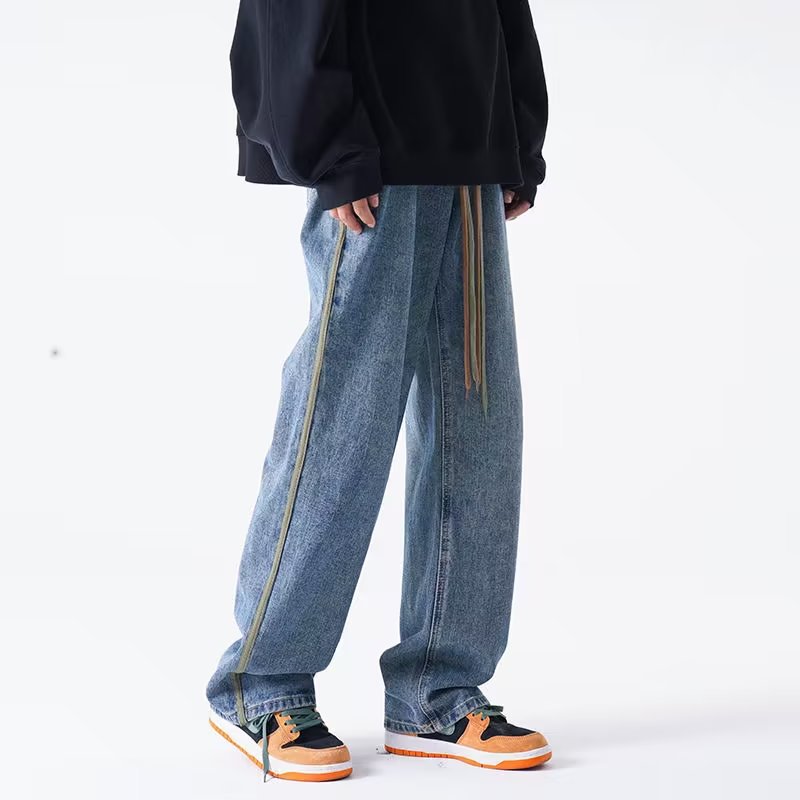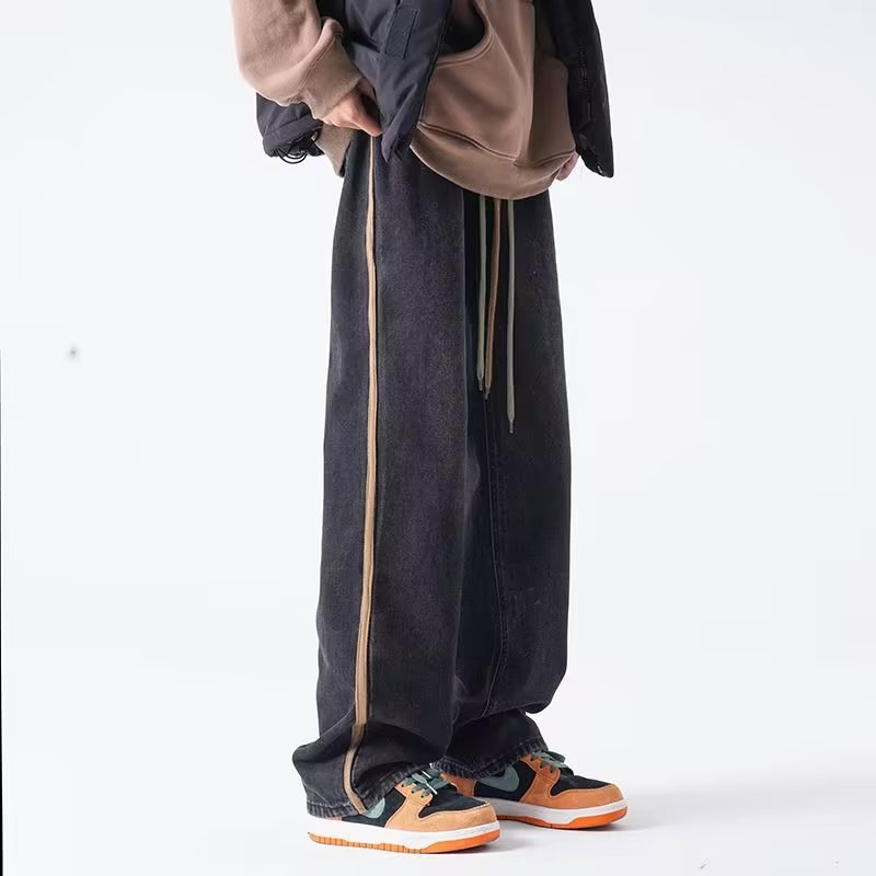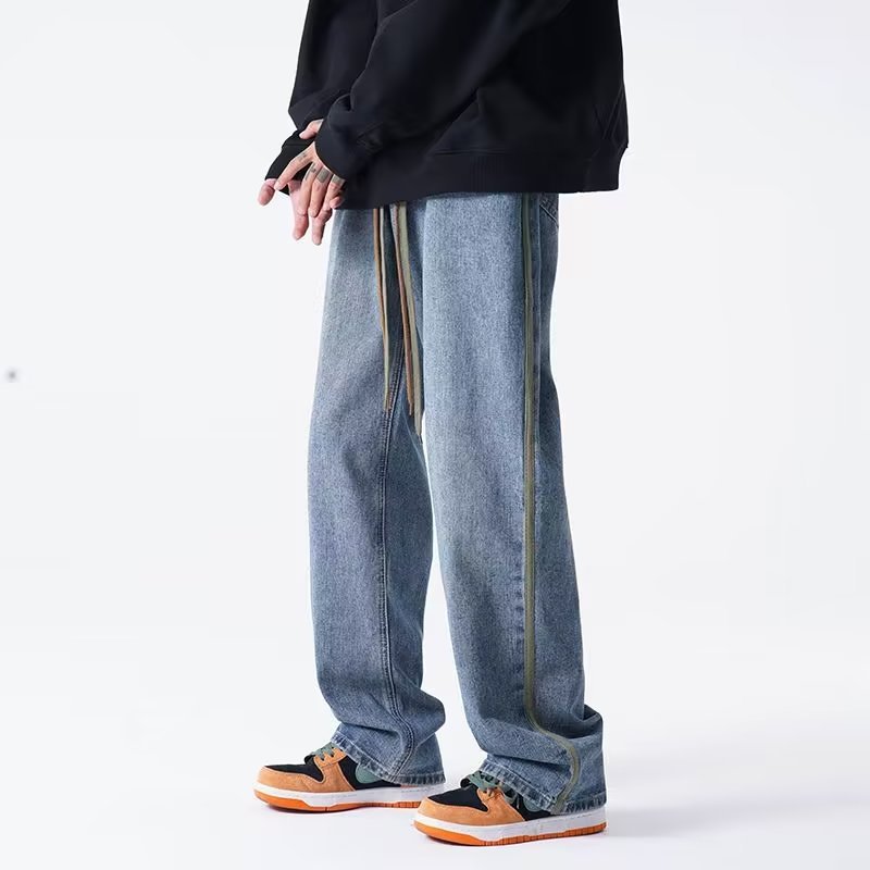 청바지 남자의 겨울 디자인 감각 트렌디 두꺼운 스트레이트 팬츠 아메리칸 스타일 느슨한 트렌디 브랜드 레트로 워시 롱 팬츠스토어 가기
