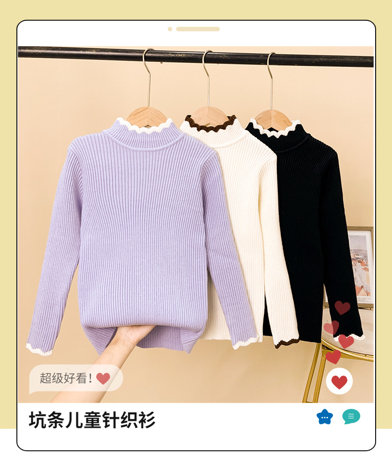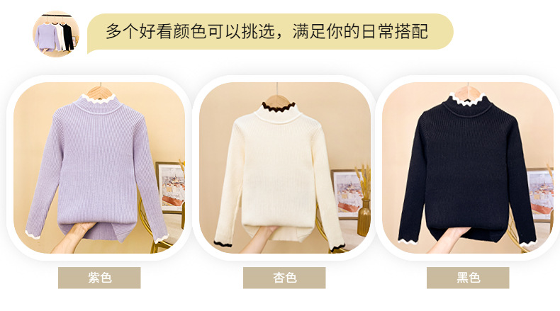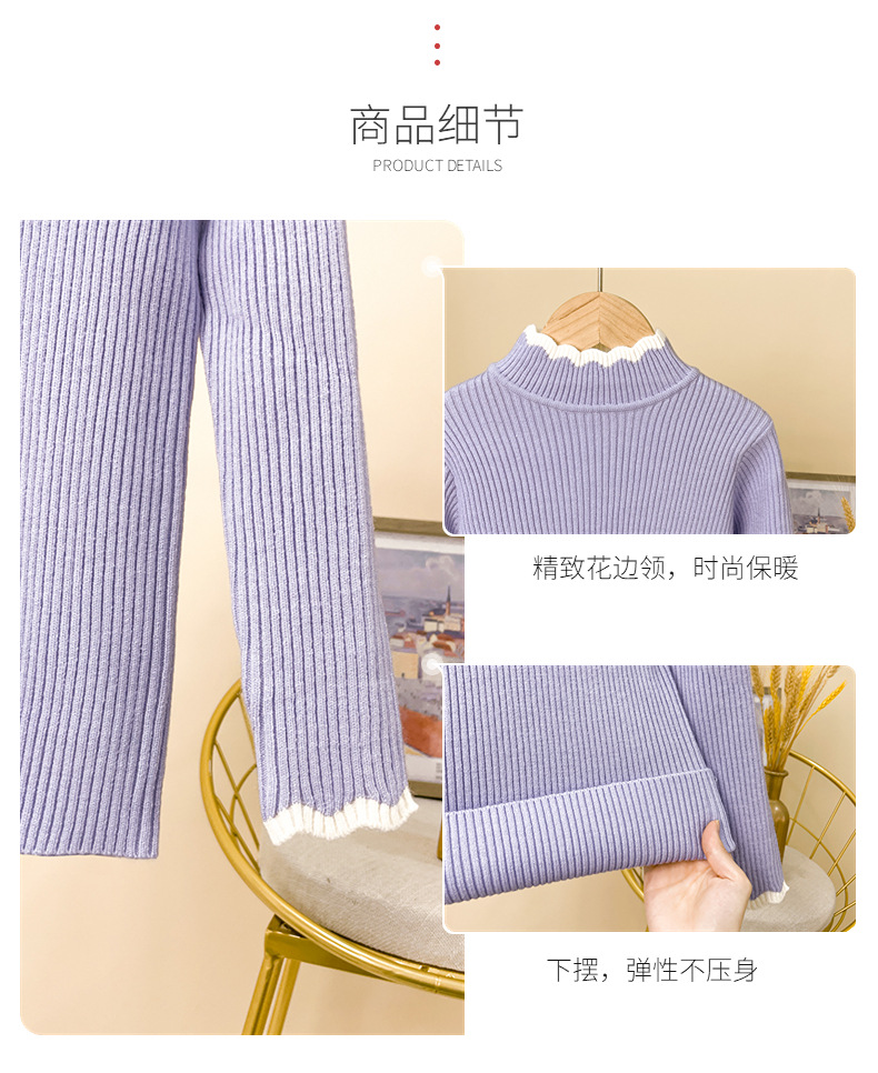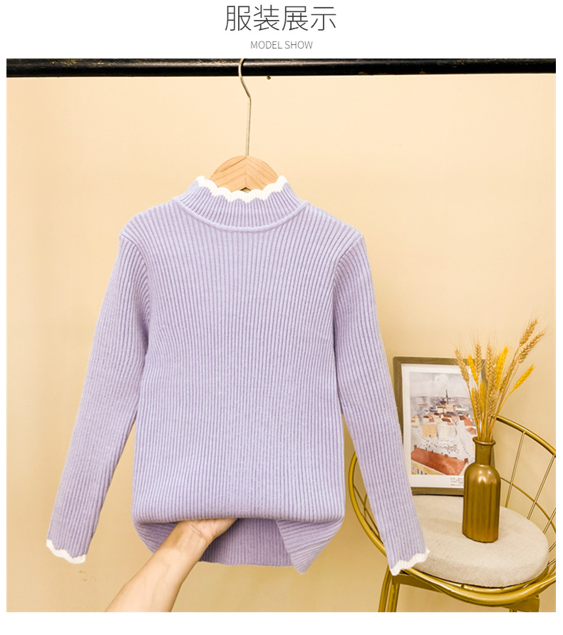 가을과 겨울 여아 베이스 스웨터 원피스 벨벳 2023 새로운 스타일 한국식 미들 칼라 여아 기모 니트 이너 림