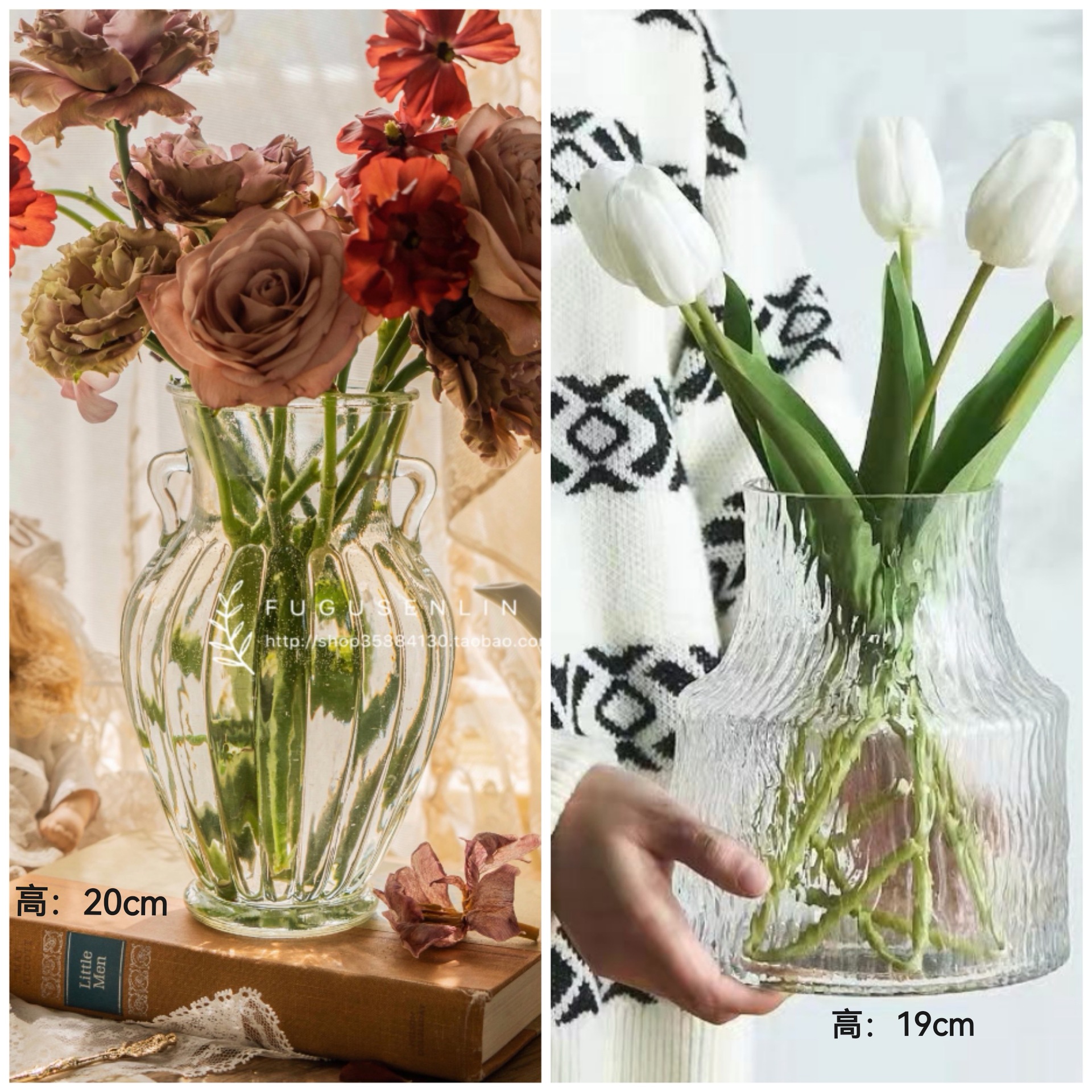 • [조합] 배꼽 껍질 (투명) + U 자형 꽃병 (투명)